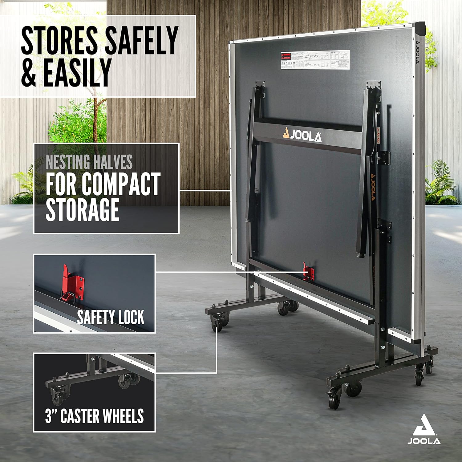 - SAFE, MOBILE, COMPACT STORAGE: The 2 halves and 3" lockable wheels and casters makes this ping pong table easy to roll and move around when not in use. Does not include ping pong paddles