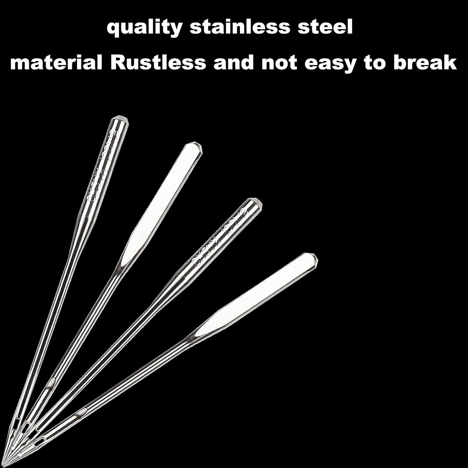 - Great Design: The sewing Needles shank one side is flat and one side is semicircle, has an enlarge eye and large grooves to accommodate top stitch thread. A sharp needle can helps you stitch perfectly straight lines and even stitches, and work very smoothly.