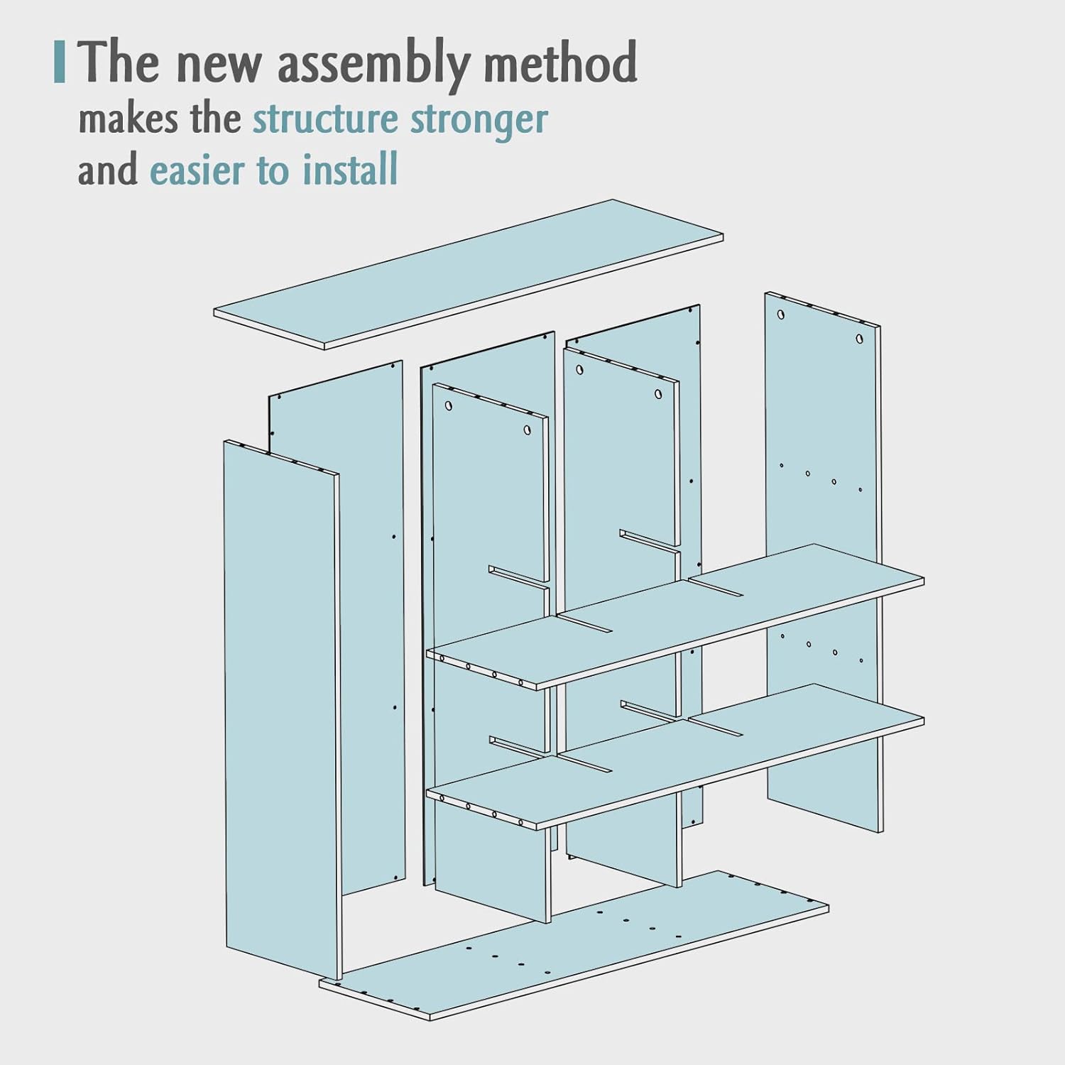 - STABILITY & DURABILITY - We gave up the previous structure of dividing the large board into several small pieces to make the package smaller but used large boards directly to make the structure stronger. The 0.48" thickness MDF with the waterproof process also makes the whole cube shelf organizer durable.