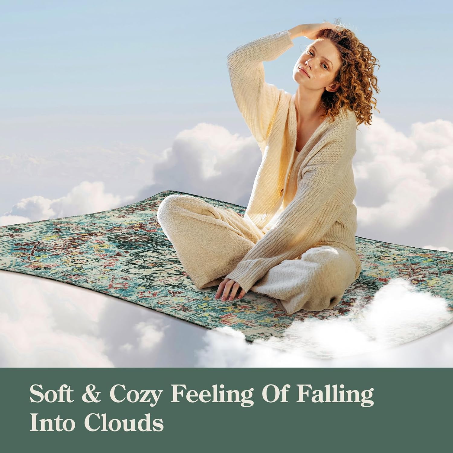 - [Exclusive Design Accent Rug] - This oriental area rug brings a vibrant color scheme and bohemian floral style print to your space. It mainly features a teal, yellow, red design patterns, has a mystical quality that feels right out of a fairy tale, with purposeful distressing to add vintage appeal to your space.