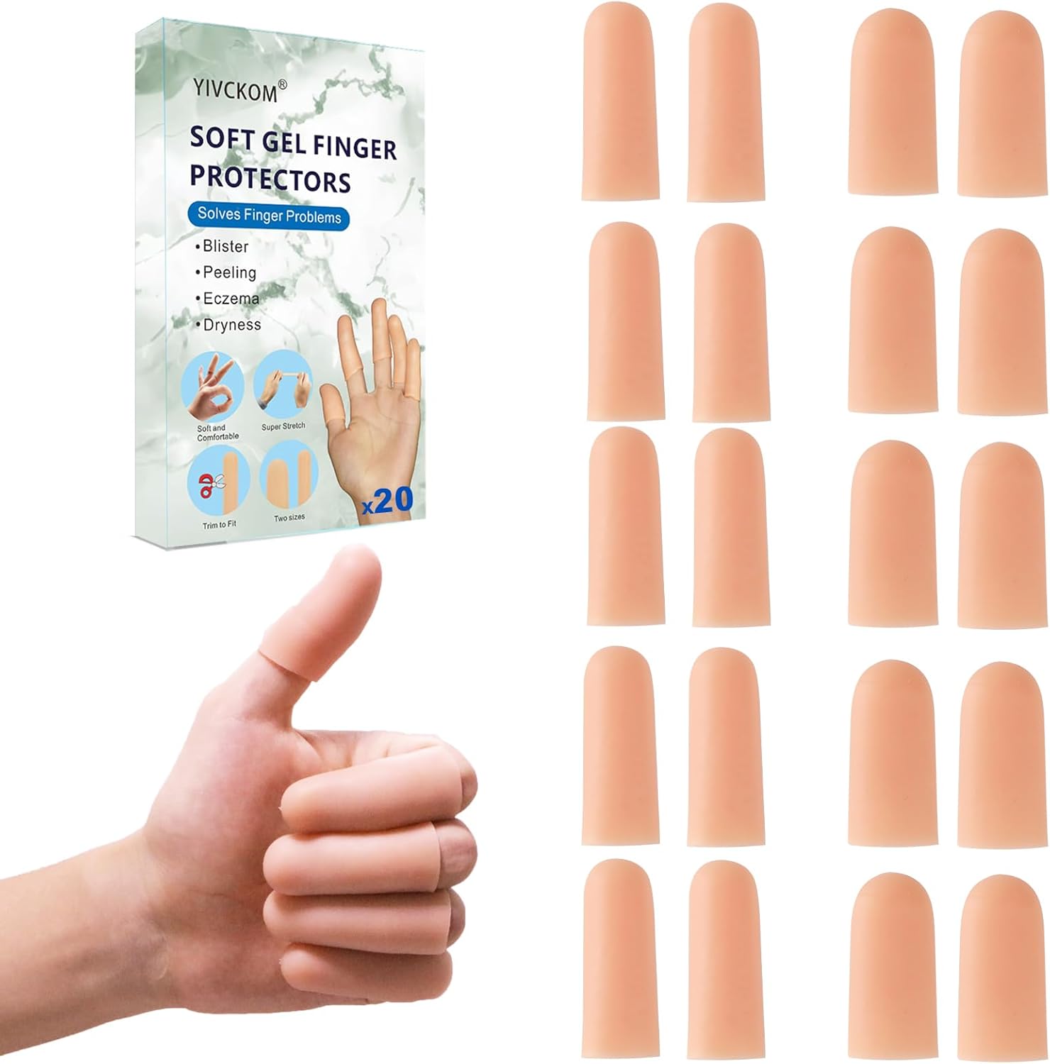 Gel Finger Cots, Silicone Finger Protectors, Fingertip Bandages Band-aids for Dry Skin, Cracked Fingertip Treatment,Thumb Protector Covers for Hand Eczema Finger Arthritis (20pcs)