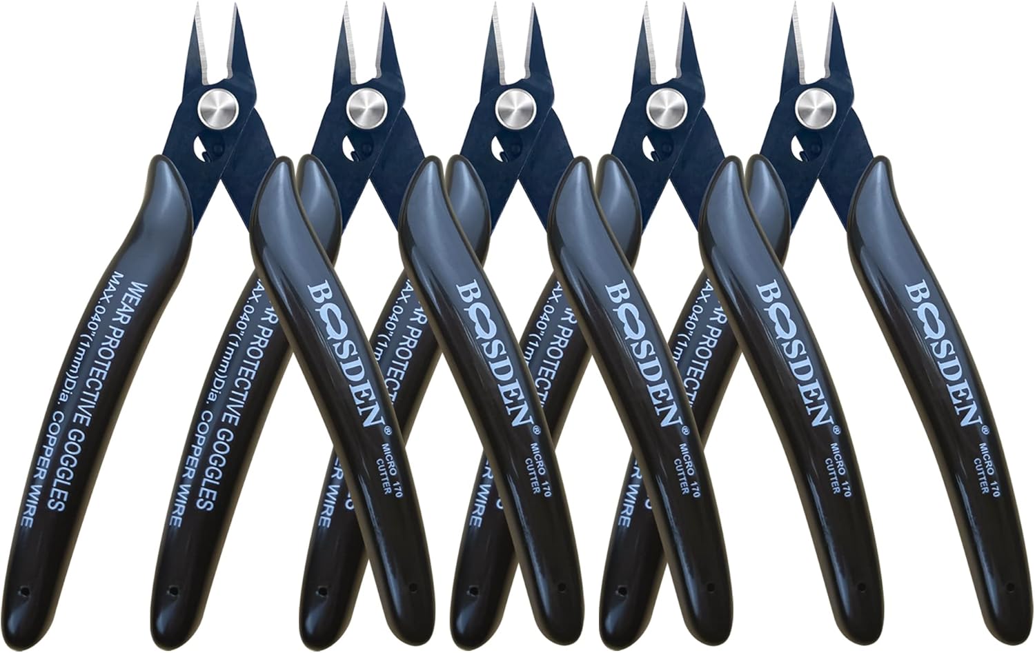 Flush Cut Pliers, 5 Pack, 5 Inch Small Wire Cutters, BOOSDEN 170 Wire Cutters Flush Cutter Pliers, Micro Cutter for Crafts, Models, Zip Ties Snips, Nippers, Electronic