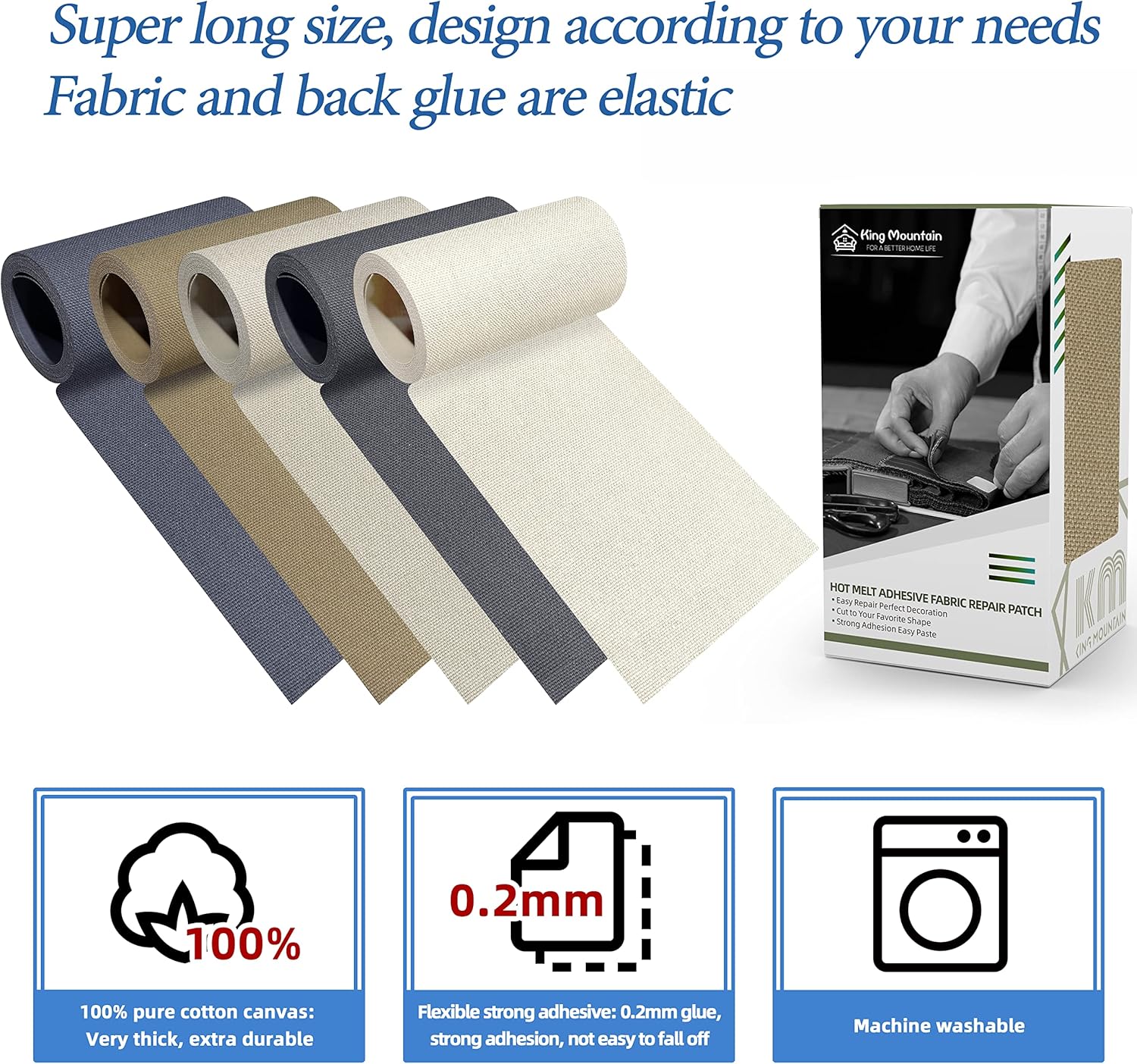 KING MOUNTAIN Canvas Iron on Patch,3"×60",Waterproof 100% Cotton Fabric Repair Patch,Used for Various Sofa,Tent,Clothes,Seats,Suitcases (Light Brown)