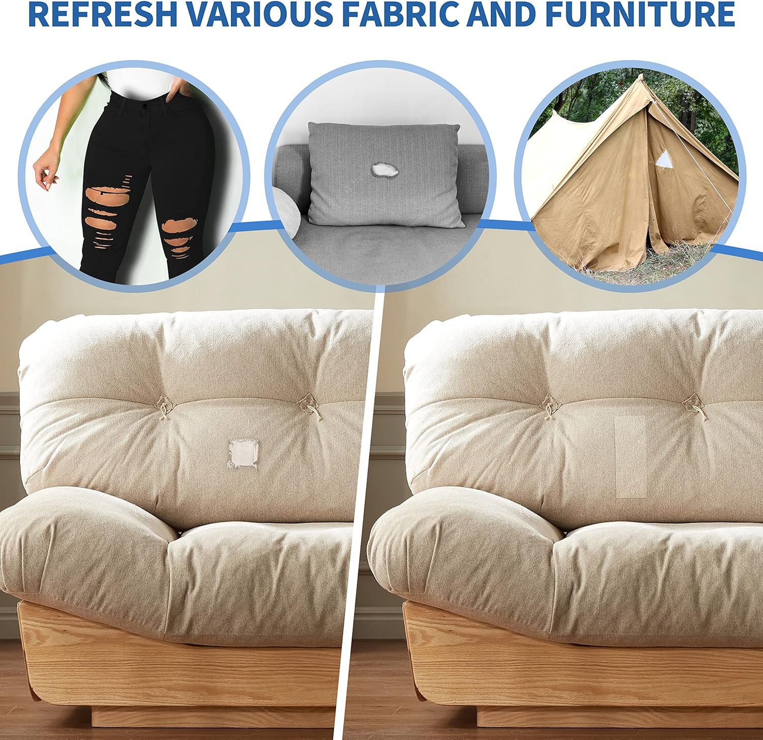 - Super Affordable,Worth Buying: You don't need to spend time sewing or spend any more money to find a professional repairman to repair it for you, or buy a brand new furniture. With our canvas patch, you can bring furniture back to life and prolong the lifespan of furniture, saving time and energy, it is a great choice! If there’s any dissatisfaction or suggestions for our products, please reach out to us for exchange or refund.