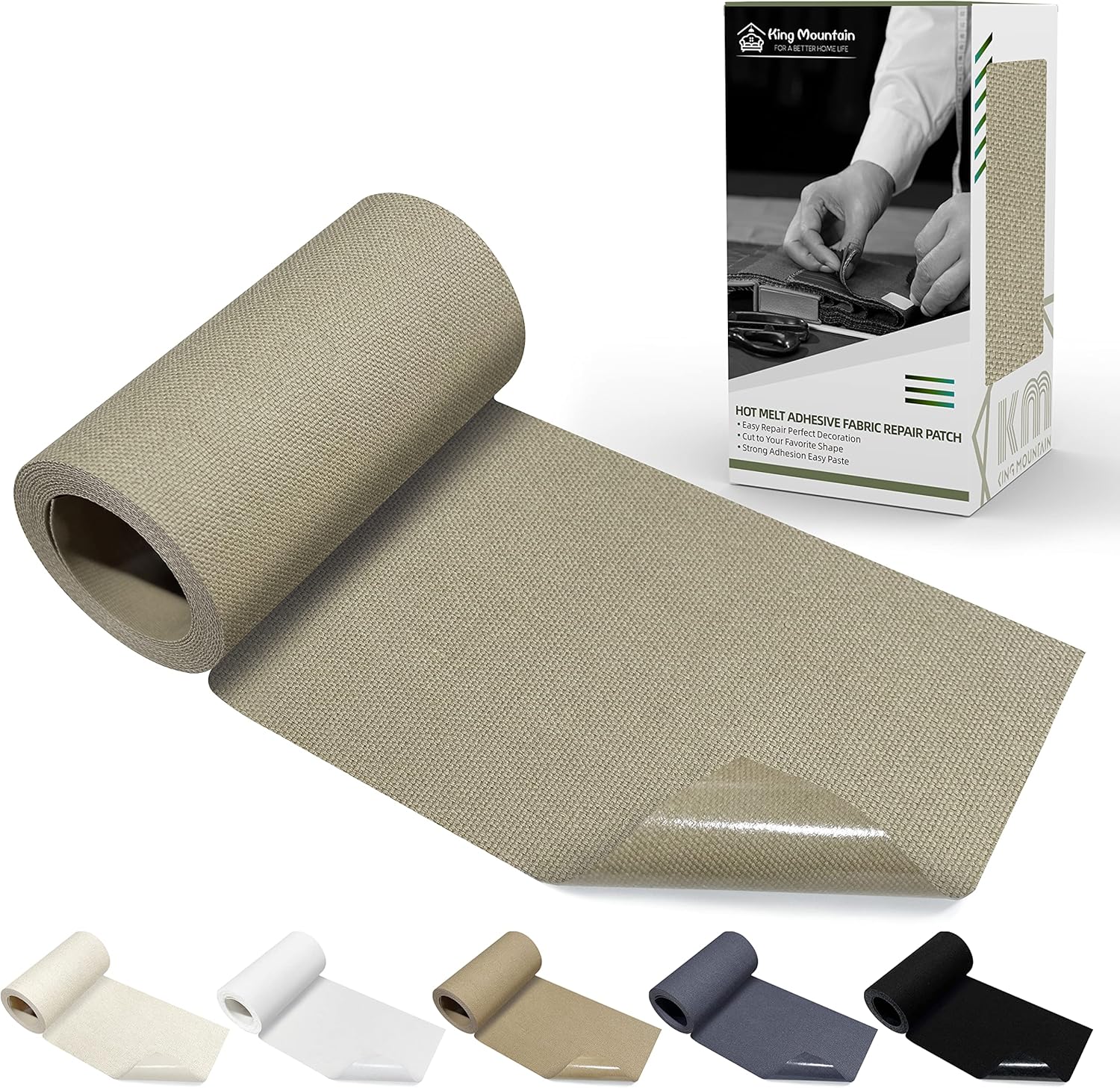 KING MOUNTAIN Canvas Iron on Patch,3"×60",Waterproof 100% Cotton Fabric Repair Patch,Used for Various Sofa,Tent,Clothes,Seats,Suitcases (Khaki)