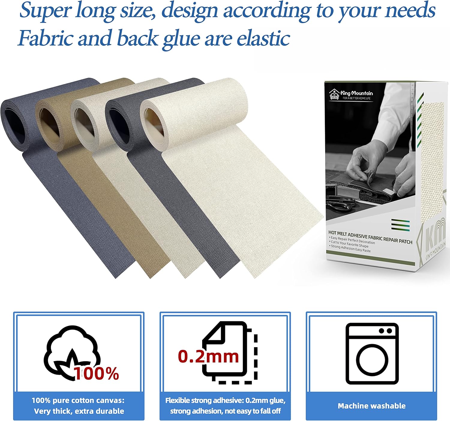 - Premium quality material: 3"x60"(7.5x152cm), large enough to help you repair holes of different sizes, one roll is more convenient for you to store and use. The front of this canvas iron on patches patch is made of 100% cotton canvas, which is tight and thick, wear-resistant and durable, and can be used on the inside and outside of clothes. The back features a 0.3mm thick strong hot-melt adhesive film, which can help you repair various damage problems quickly and easily.