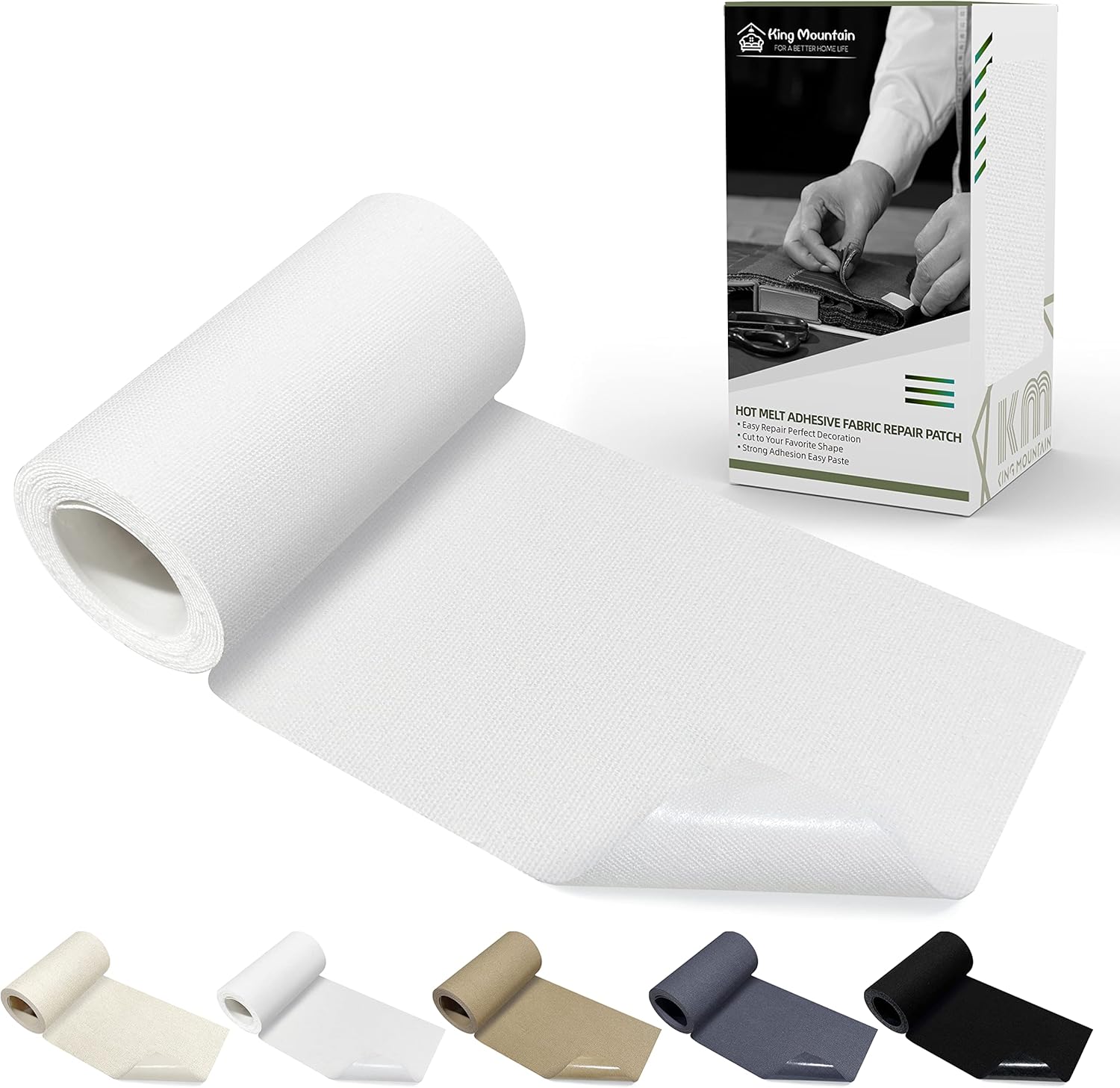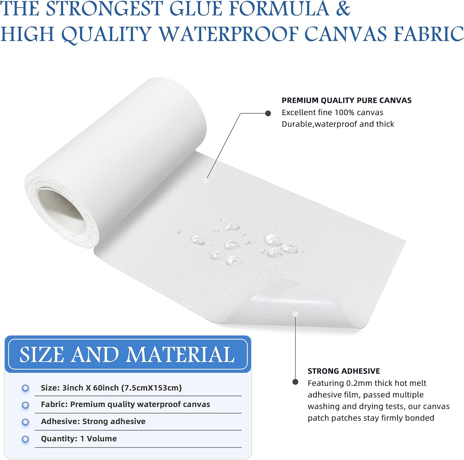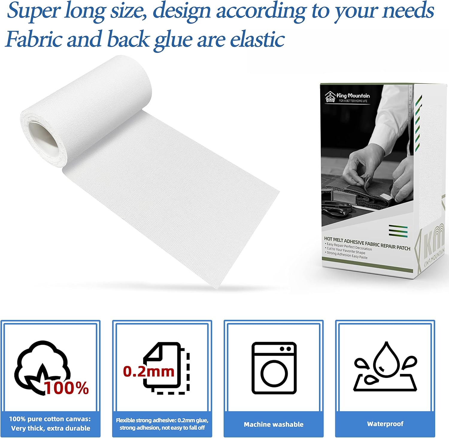 KING MOUNTAIN Canvas Iron on Patch,3"×60",Waterproof 100% Cotton Fabric Repair Patch,Used for Various Sofa,Tent,Clothes,Seats,Suitcases (White)