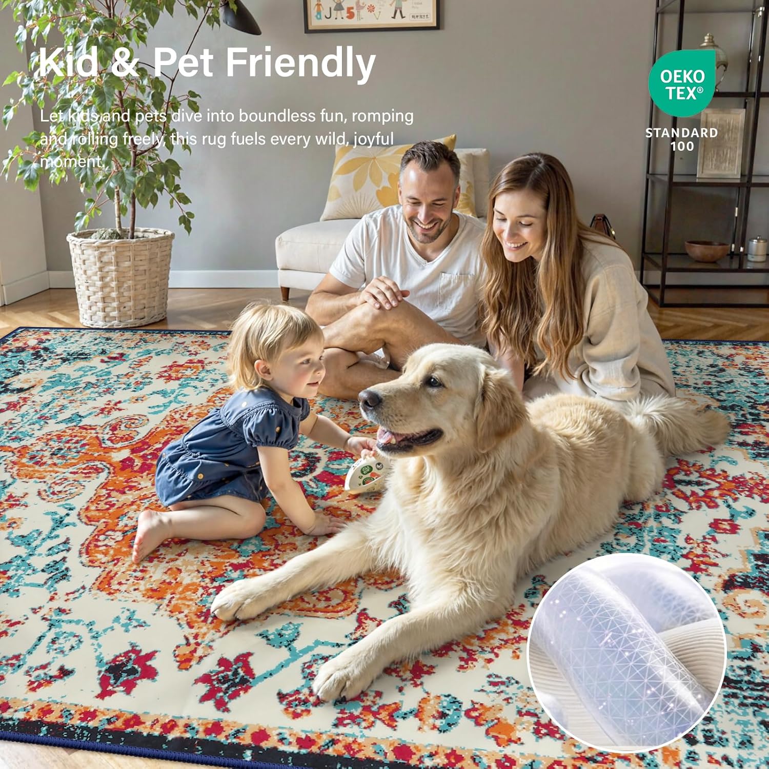 - [Safety Non-Slip Mat] - Our indoor accent rug made of extra-absorbent fabric top layer and skid resistant backing which is safe for everyday indoor high traffic area from kid or pet activity. (Keep the bottom of the rug always be dry.)