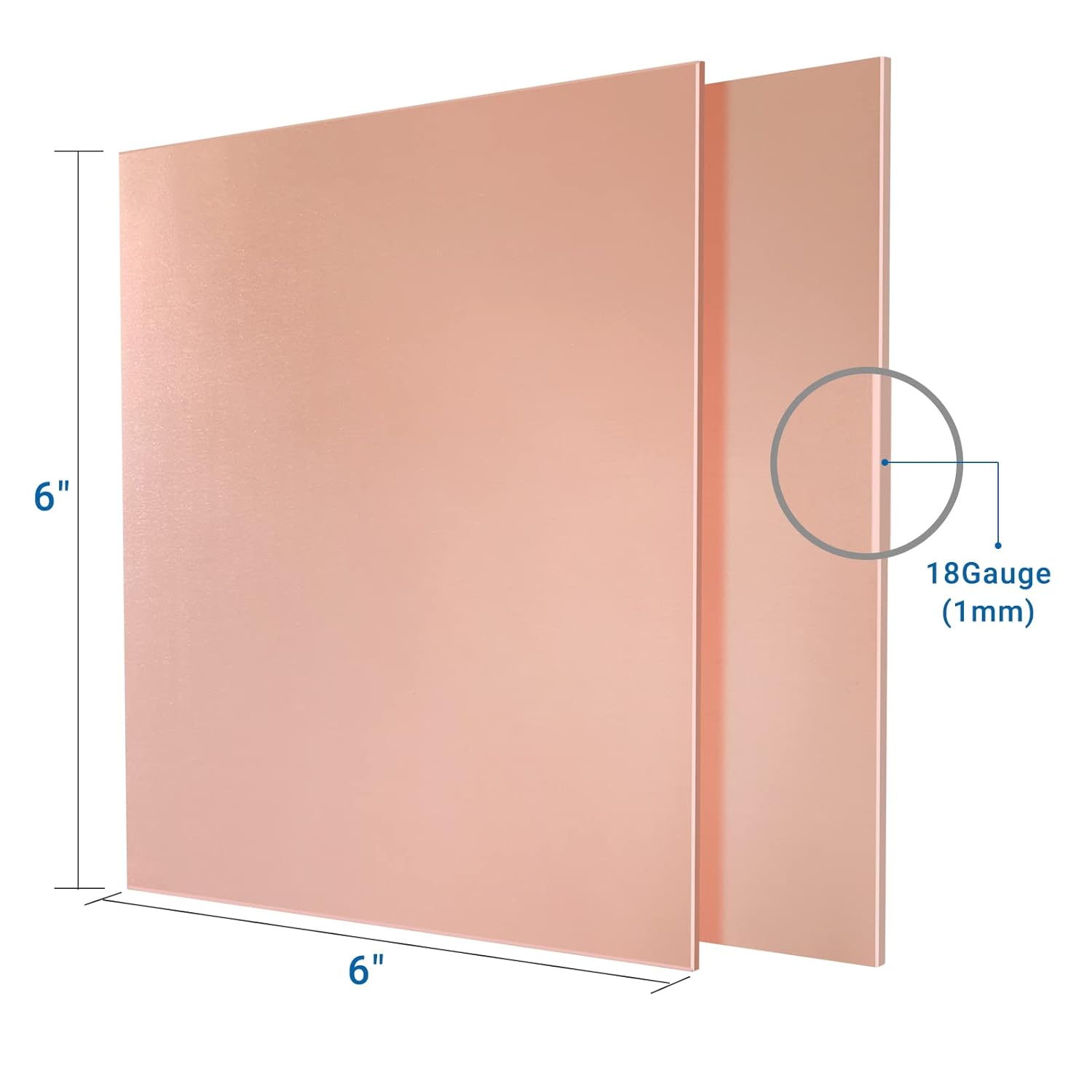 - 2Qty 6" x 6",18 Gauge(1mm) Thickness Quality Pure Copper Plates.
