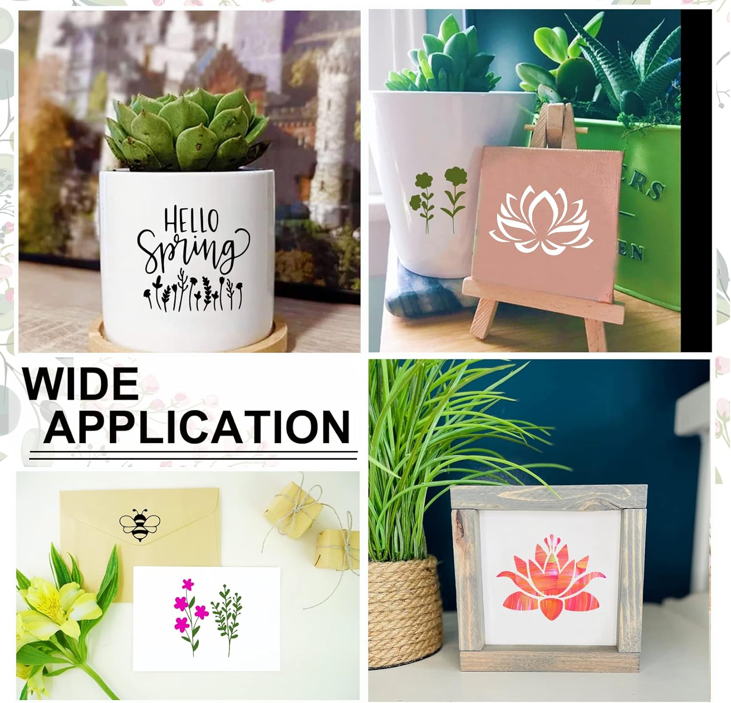 - Wide Application: Our stencils for crafts reusable prove highly adaptable, being perfectly suited for a multitude of craft projects on various flat surfaces, encompassing glass, Ornament, wood, canvas, furniture, fabric, paper, rocks, metal, ceramics, coasters and more.
