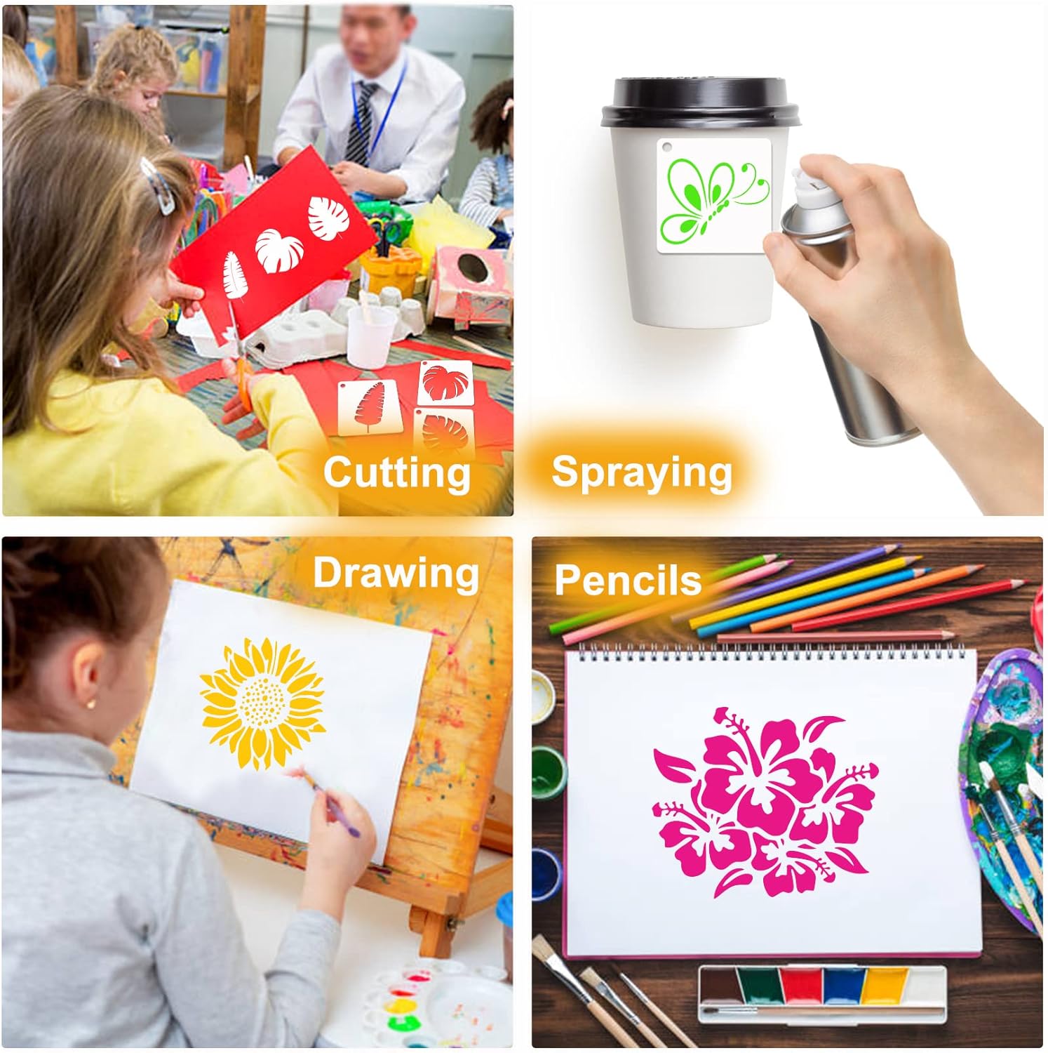 - Reusable Material: These Inspirational stencils are made of high-quality PET material, boasting a 0.40mm thickness. They're sturdy, yet soft and flexible, making them resistant to breaking, easy to clean.