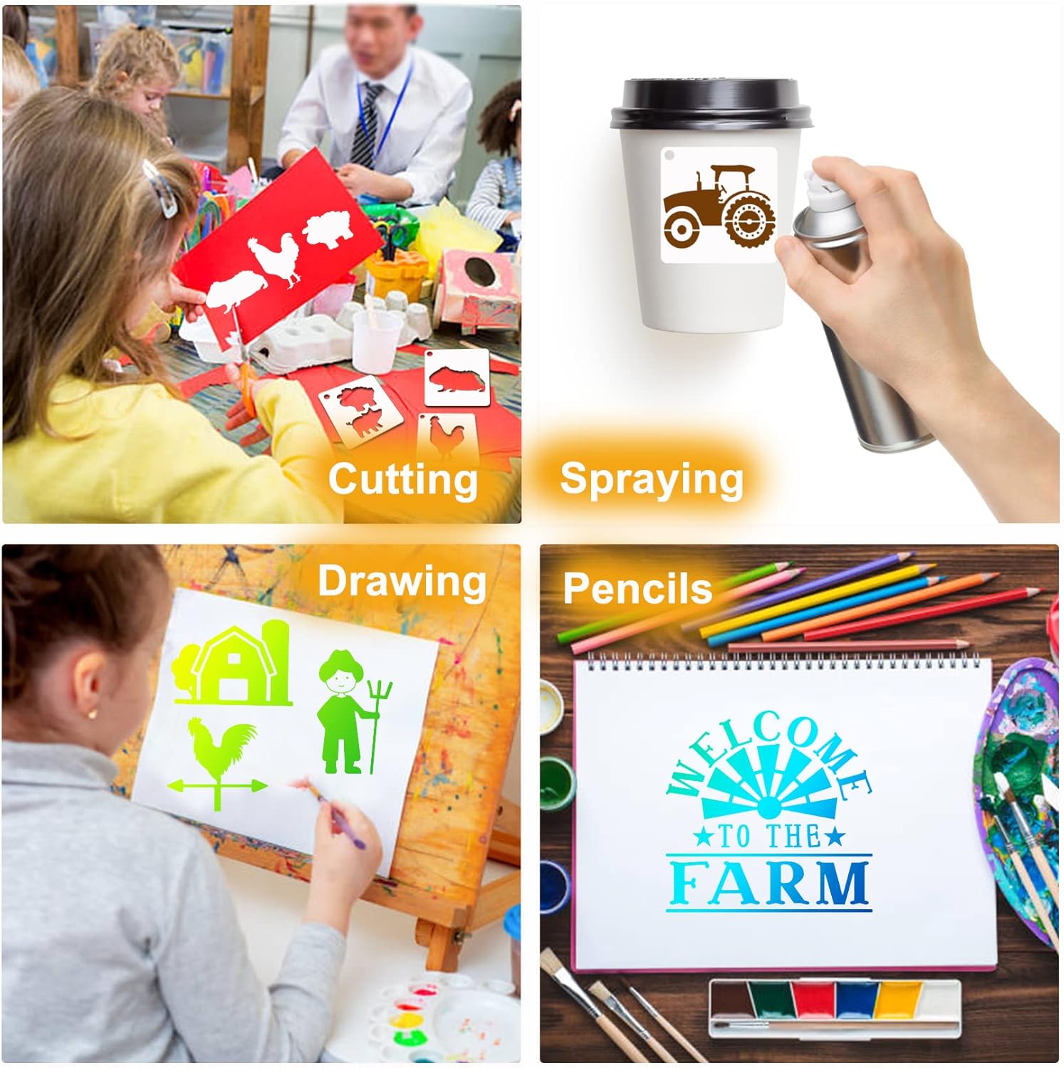 - Theme: Our 3 inch reusable farmhouse animal paint crafts stencil set with various interesting farm animal element, including pig, rabbit, chicken, cow, farm houses and other element, such as mountain, tree, dragonfly, pine tree and more. With them, you can DIY with kids and enjoy the fun of DIY paintin