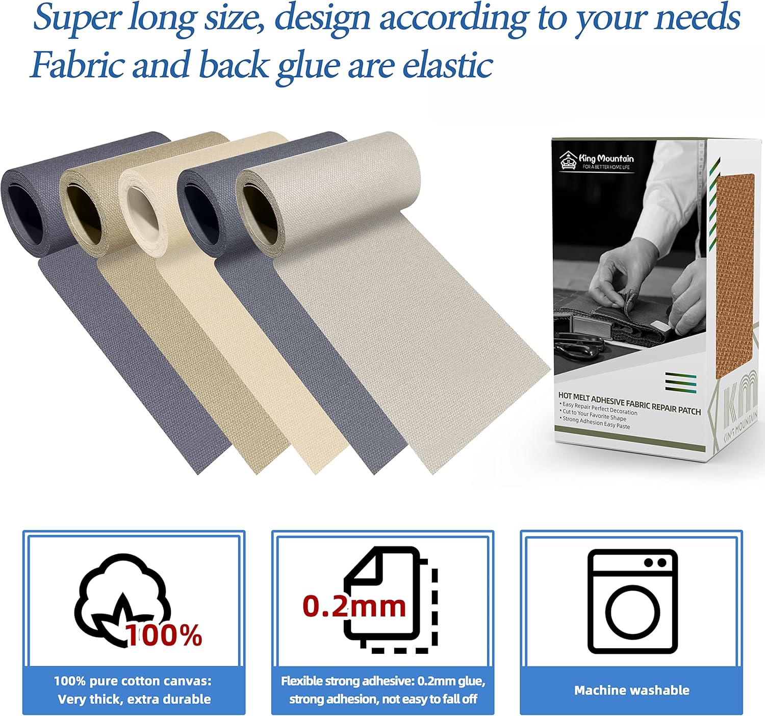 - Premium quality material: 3"x60"(7.5x152cm), large enough to help you repair holes of different sizes, one roll is more convenient for you to store and use. The front of this canvas iron on patches patch is made of 100% cotton canvas, which is tight and thick, wear-resistant and durable, and can be used on the inside and outside of clothes. The back features a 0.3mm thick strong hot-melt adhesive film, which can help you repair various damage problems quickly and easily.