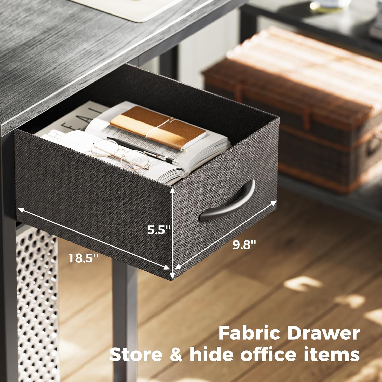 - 【Desk with Storage】The desktop and 2 storage shelves on the side allow you to store unlimited office supplies. The host can be placed on the bottom shelf and there is a fabric drawer to store stationery and other privacy items. Super practical design!