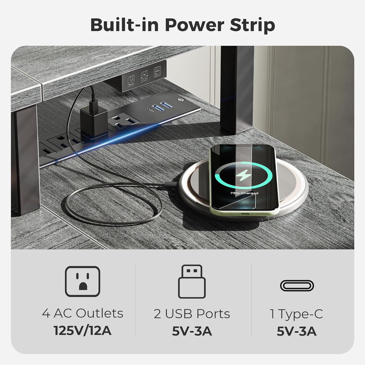- 【Desk with LED Lights】PATENT PENDING! Create the perfect ambiance for gaming or working with this computer desk. Choose from over 60,000 colors and enjoy the timing mode, mic mode, and music mode via the App. Alternatively, use the smart controller to switch between 12 scene modes, adjust speed levels, and set 3 brightness levels. Note: The LED light strip needs to be plugged into a USB port to work