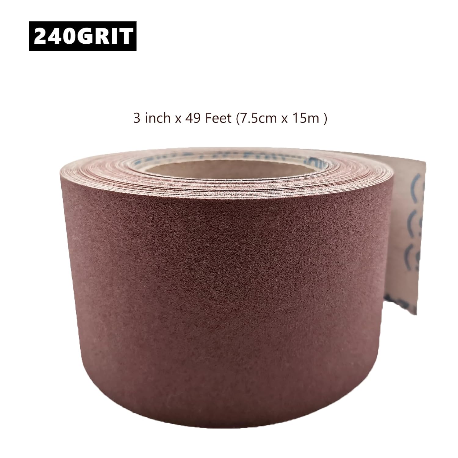 240 Grit Sandpaper Roll, 3 Inch x 49 Feet Emery Cloth Roll Aluminum Oxide Abrasive Paper Roll Continuous Sandpaper for Metalworking, Woodworker, Furniture Repair, Sanding Automotive Plumbing