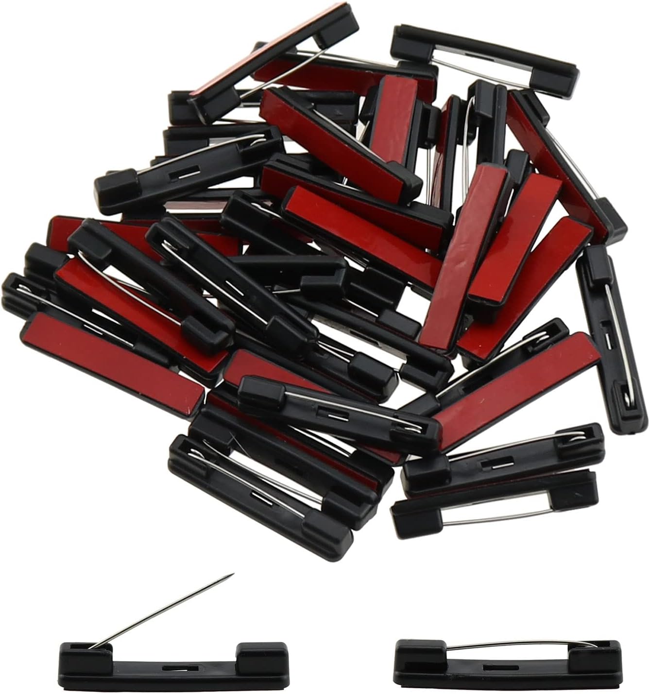 Self-Adhesive Bar Safety Pins E-outstanding 50pcs Black Safety Pin with Adhesive Brooch Back for ID Badges, Ribbons,Nametags and Crafting, Adhesive Badge Crafting Pins