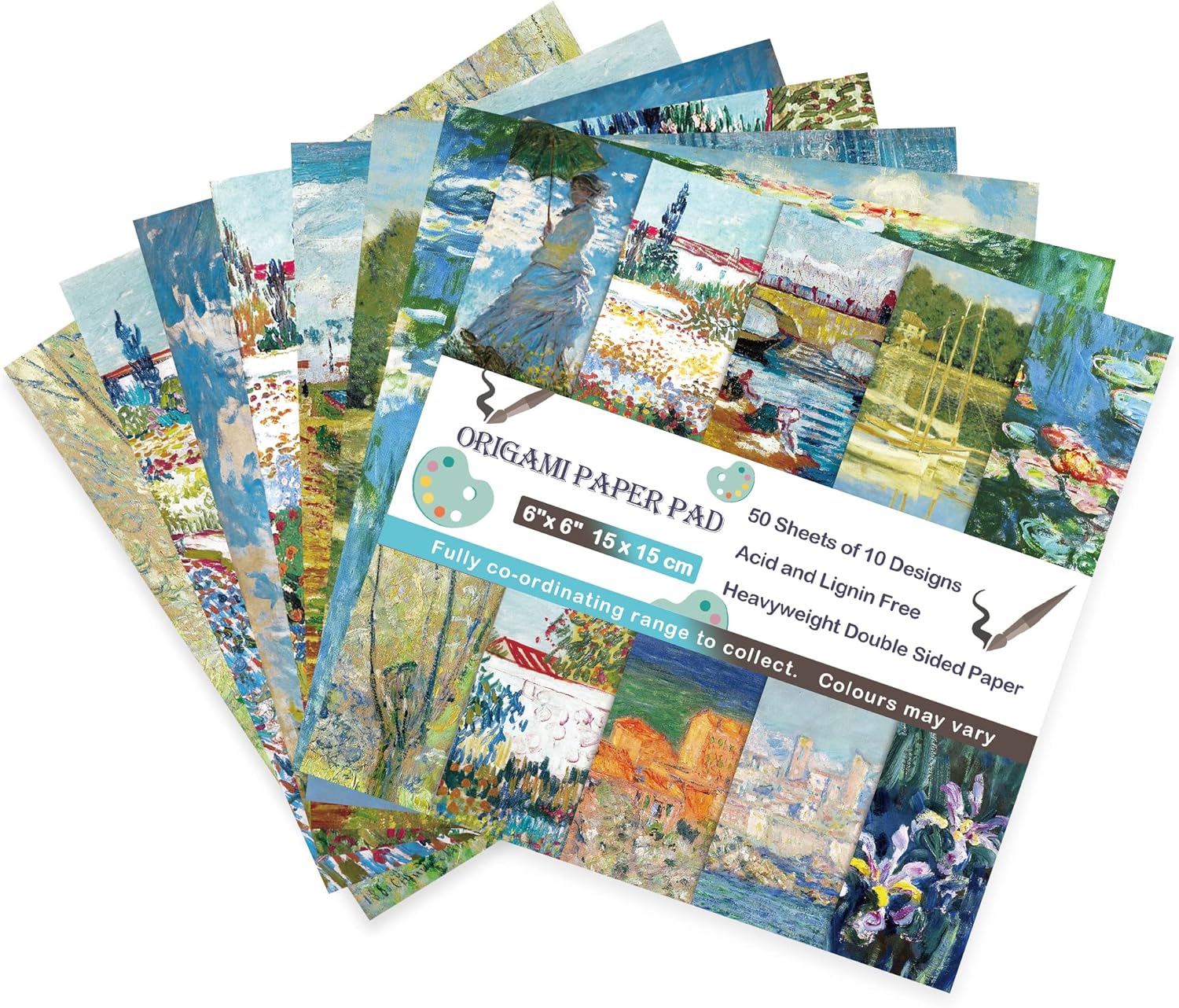 Origami Paper Kit 50 Sheets 6 Inch Square Double Sided Color 10 Vivid Colors for Hand Crafts Origami Paper Arts Creativity.Monet