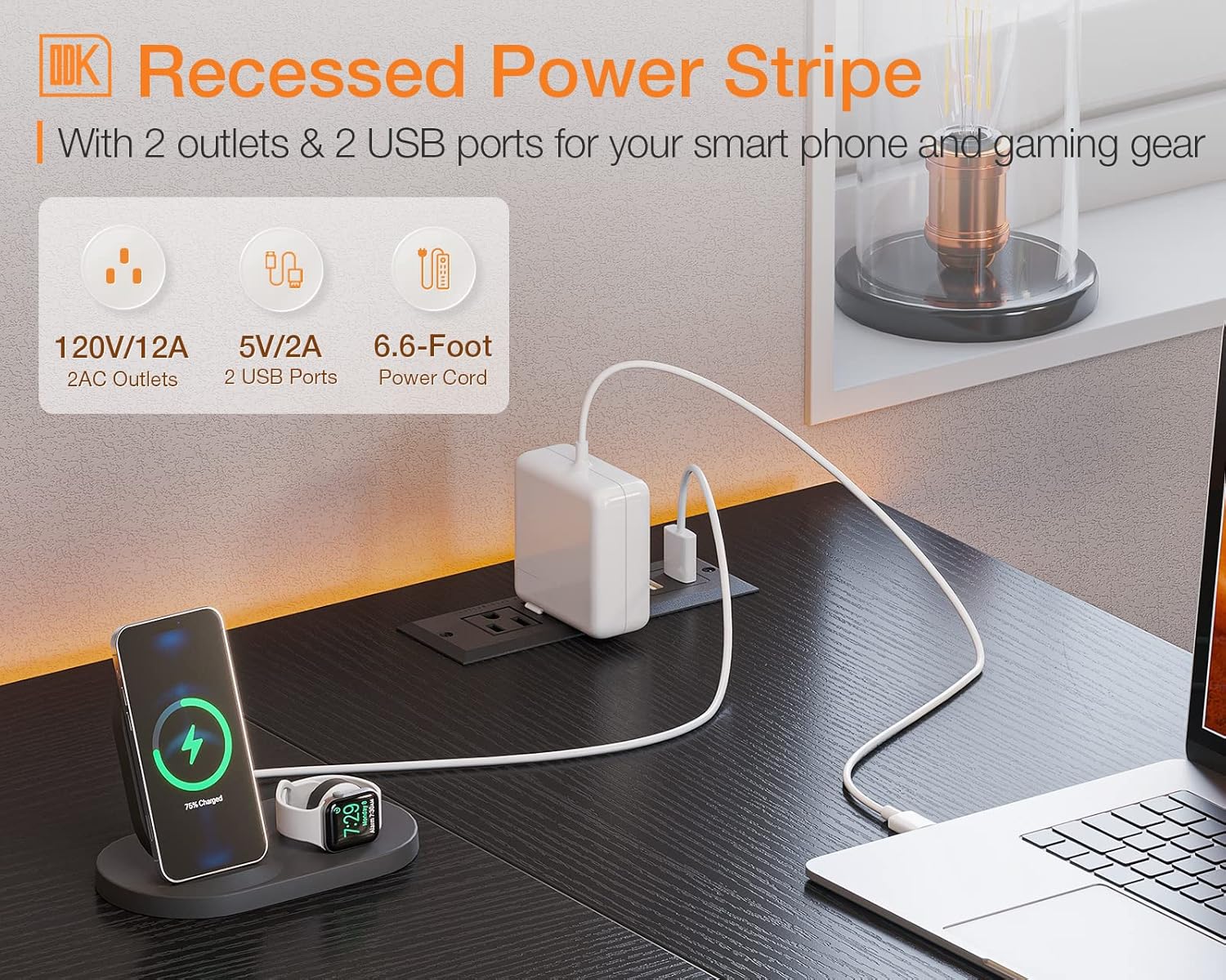 - ăPower Outlets & Charging Portsă ODK L shaped computer desk is equipped with 3 power outlets & 1 USB charging port & 1 Type-C port for your electronic devices, you can easily and conveniently charge your smart phone, gaming gear or Bluetooth devices when you are working or playing games.