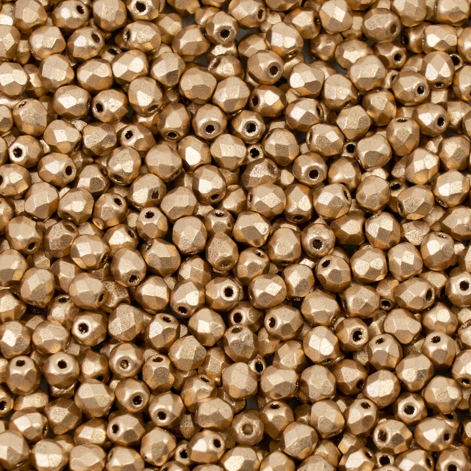 100pcs Faceted Fire Polished Pressed Czech Glass Beads 4mm (0.16in), Aztec Pale Gold - 01710
