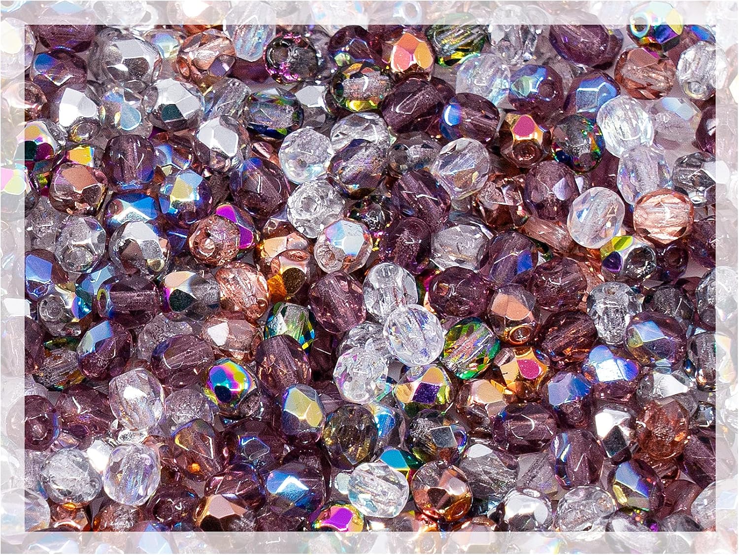 0.88 oz (25g, Approx. 300pcs) Mix of Faceted Fire Polished Pressed Czech Glass Beads 4mm (0.16in), Warm Color Mix Transparent
