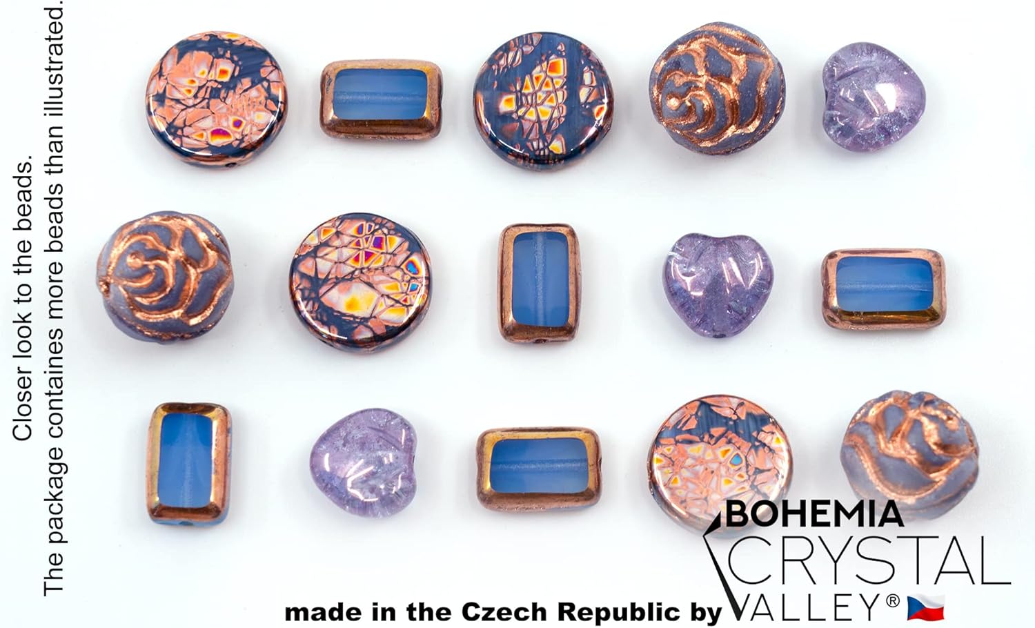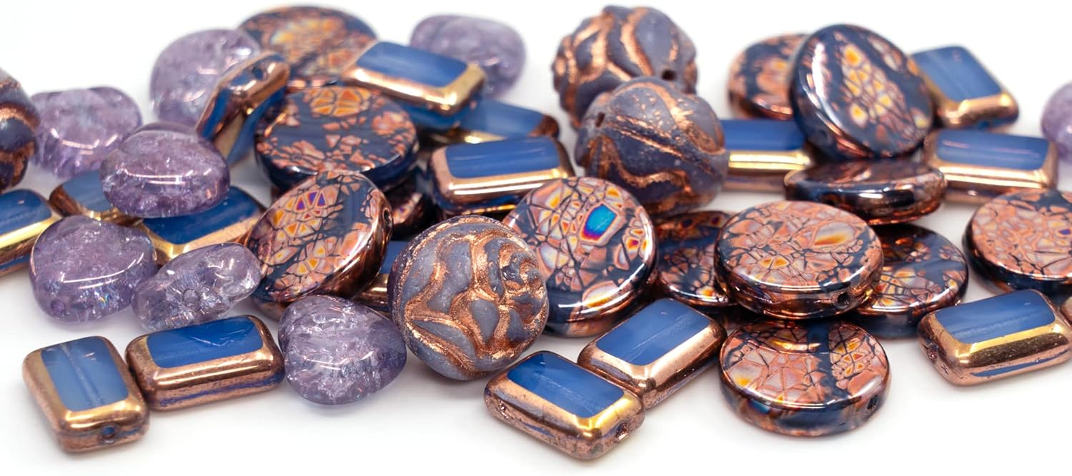 - ⭕️ COLOR ► Blue Opal, Copper Lining, Cracked Beads, Violet with Copper mix ⭕️ BEADS ► only FOCAL bead mix with roses, round & rectangle flat beads, and table-cut beads
