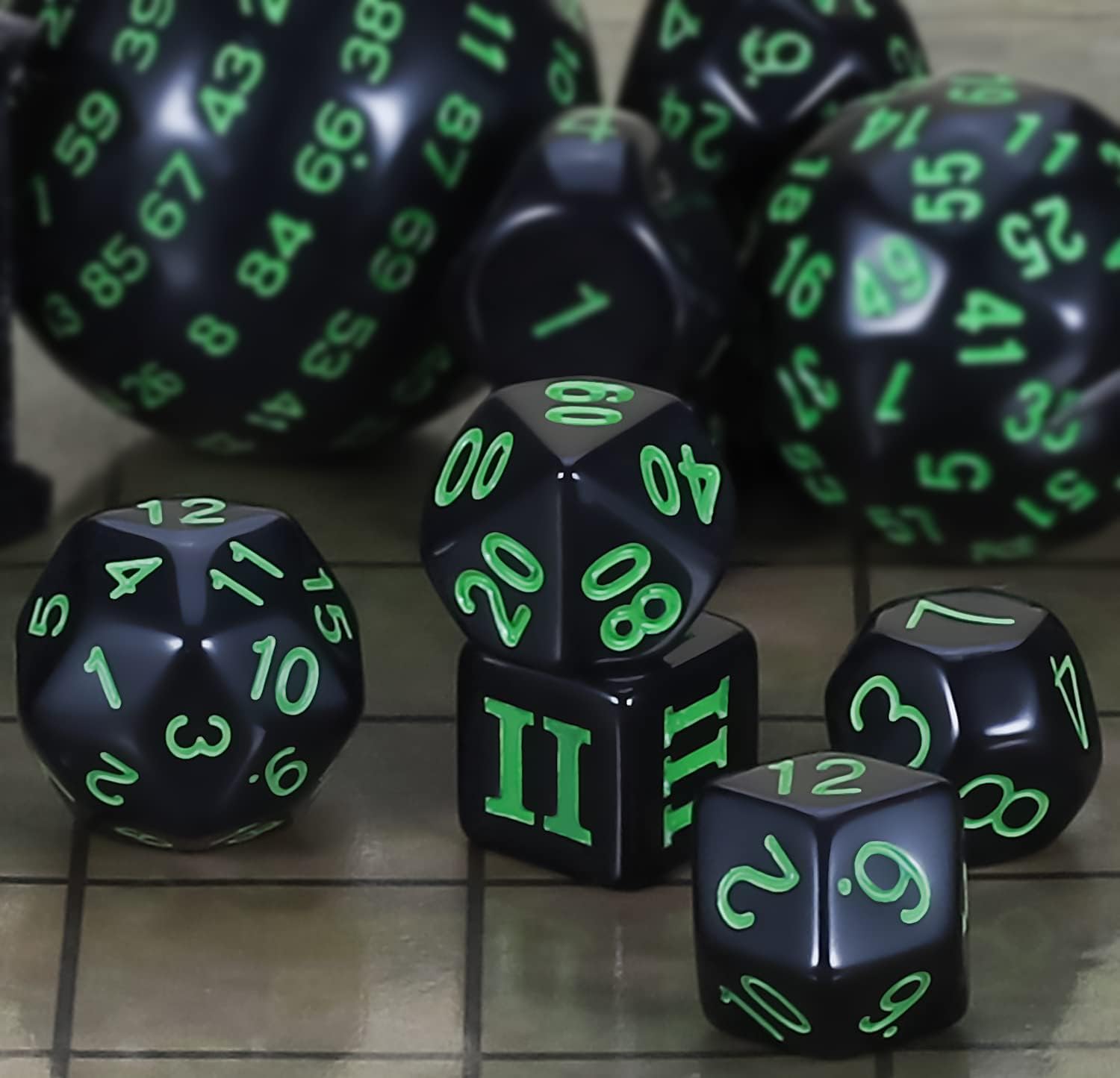 CiaraQ DND Polyhedral Dice Set (15pcs) D4-D100 Game Dice with Dice Bag for Dungeons and Dragons Role Playing Table Games (Black & Green)