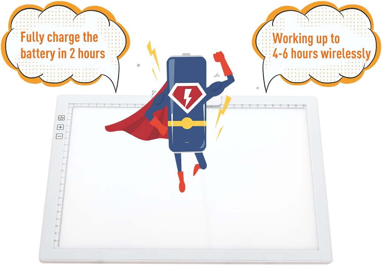 - ◆[Powerful Battery]--It only takes 2 hours to fully charge the battery of this tracing light box, and it can be used for 4-6 hours.