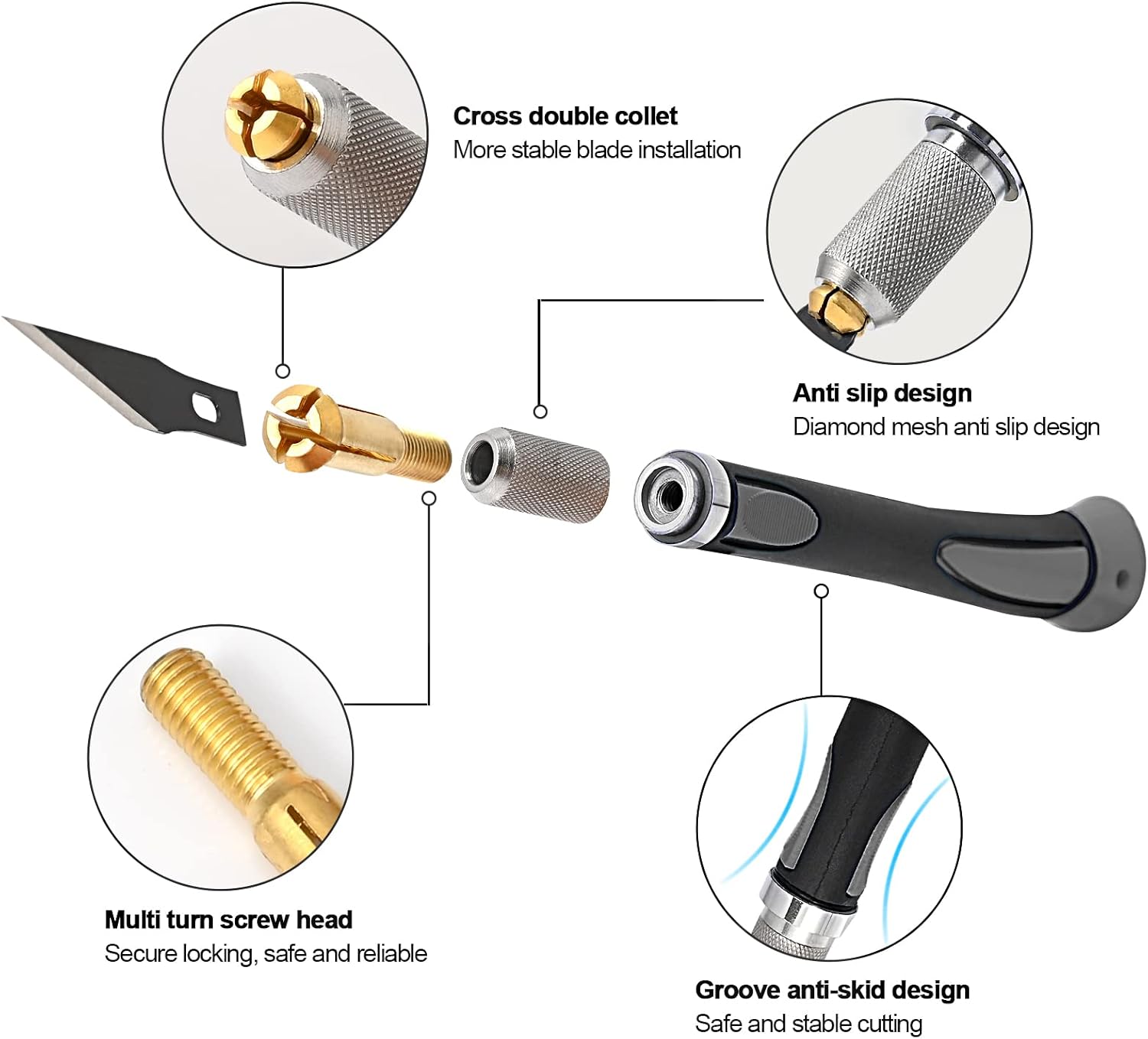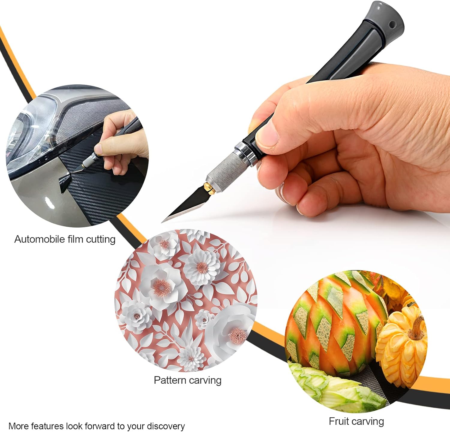 - Come with Extra 10PCS Knife Blades:10 pcs upgraded carbon steel craft blades are very sharp and durable. Precision art knives have everything you need for scrapbooking supplies, crafts, DIY projects or work tasks.