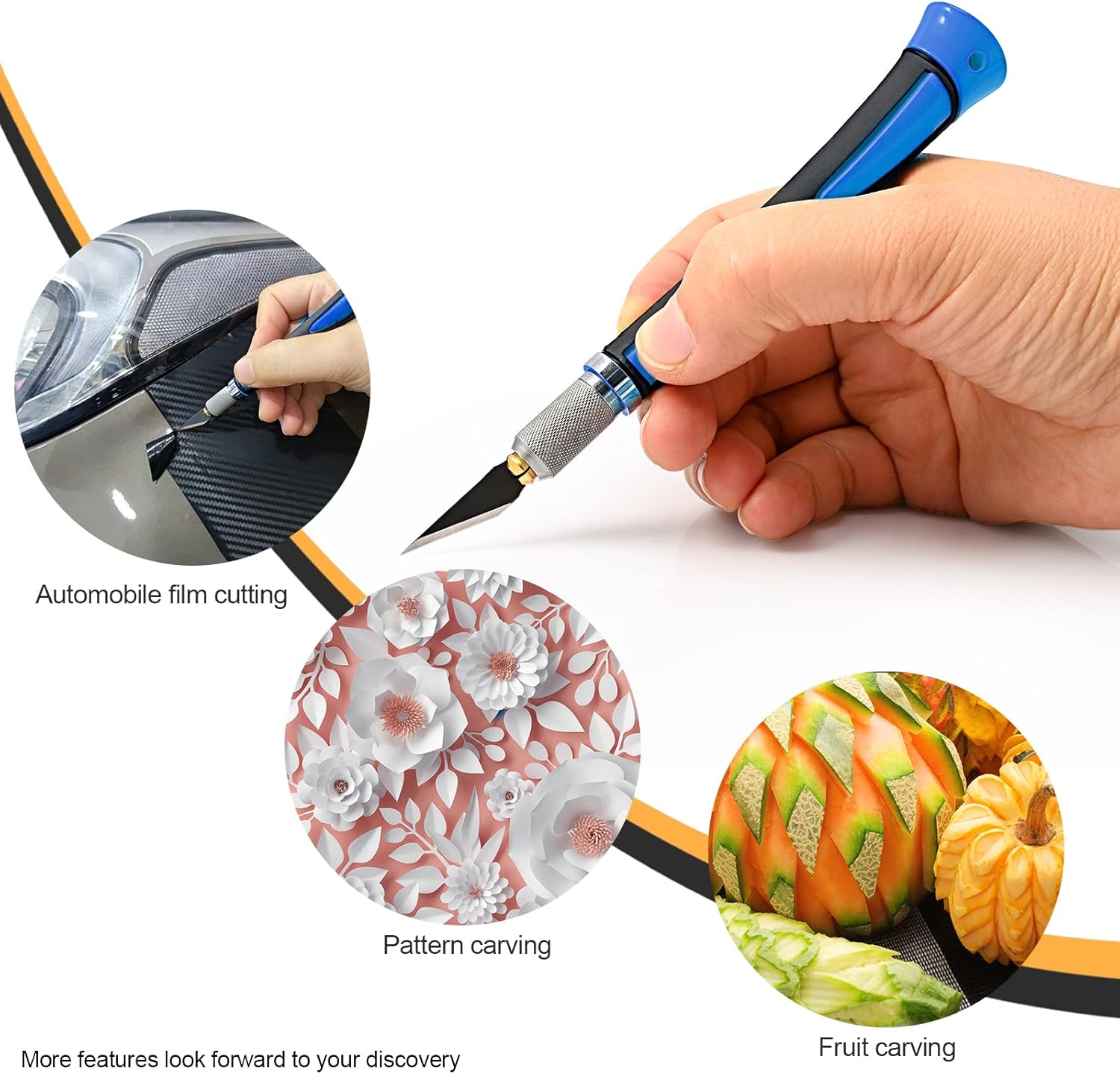- Easy to Replace Blades & High Compatible Precision Cutting Tool: Utility knife tool set come with 10 pcs spare blades, once a craft knife blade has become dull it is easier to replace it, also other suitable types of standard Hobby Knife (not included) can also be replaced according to the needs of use.