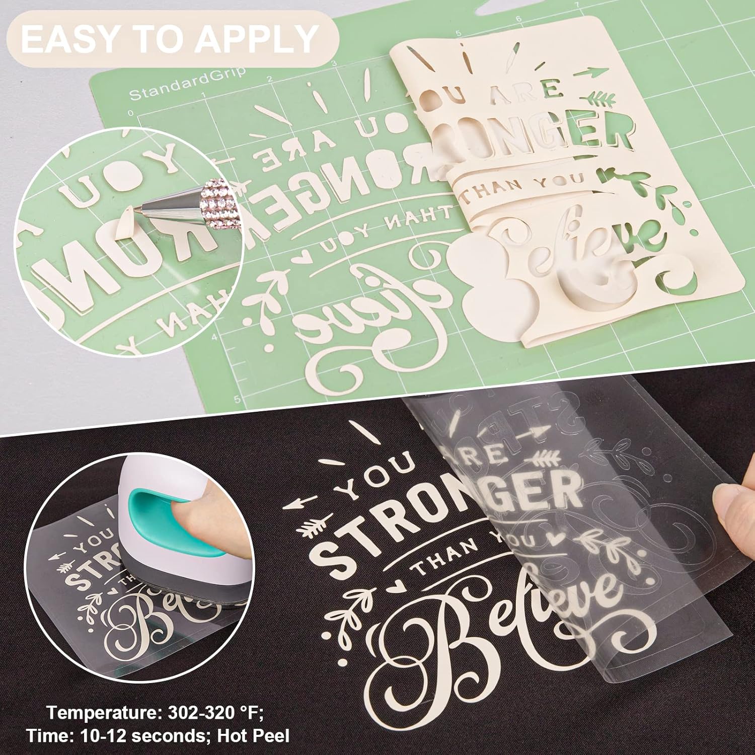 - ✂️EASY TO APPLY: Just use craft cutter and a home iron to get the job done. Apply for approximately 10-12 seconds at 302-320 °F (150-160 °C) and about 10 LBS of pressure. Be sure to cold peel.