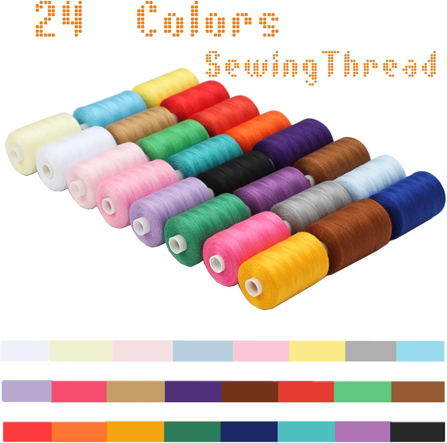 - 24 Spool - 24 Colors, each sewing thread spool 1000 Yards.