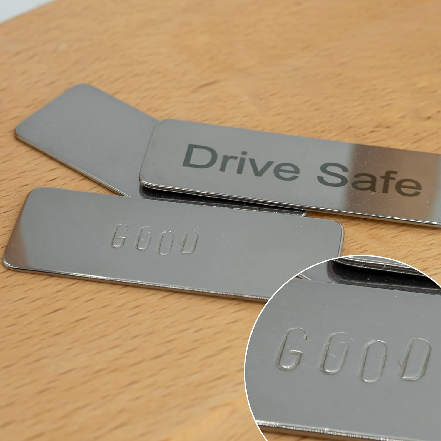 - Since the material is stainless steel, it's harder to stamp than aluminum. Also it's thick enough not to bend easily.