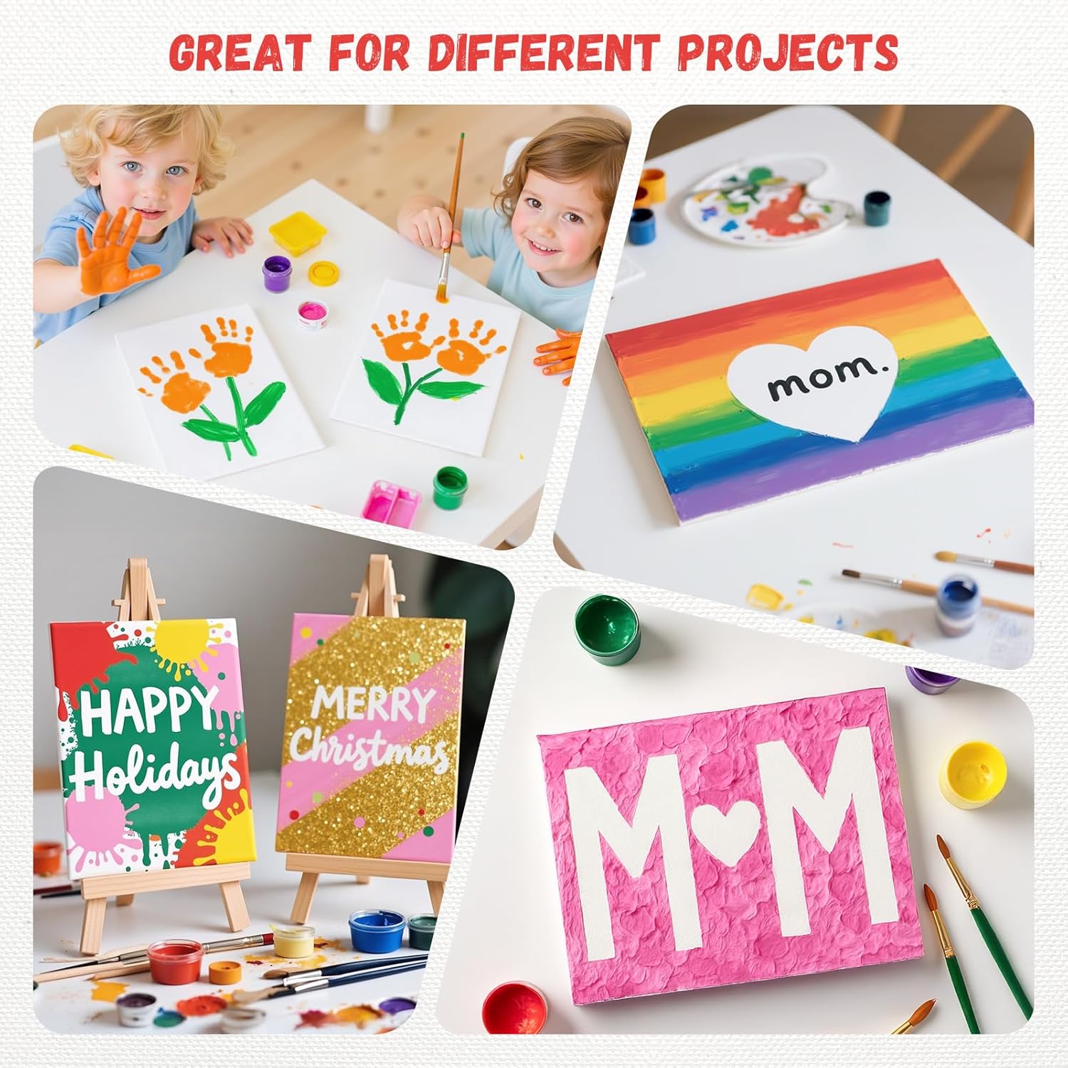 - 【Multi Applications】These art canvases for painting is suitable for students, painting classrooms, professionals, children to DIY crafts, paint art projects, decorate painting projects and exercise. Ideal for tabletop easel, clip-style collage, shelf display, etc.