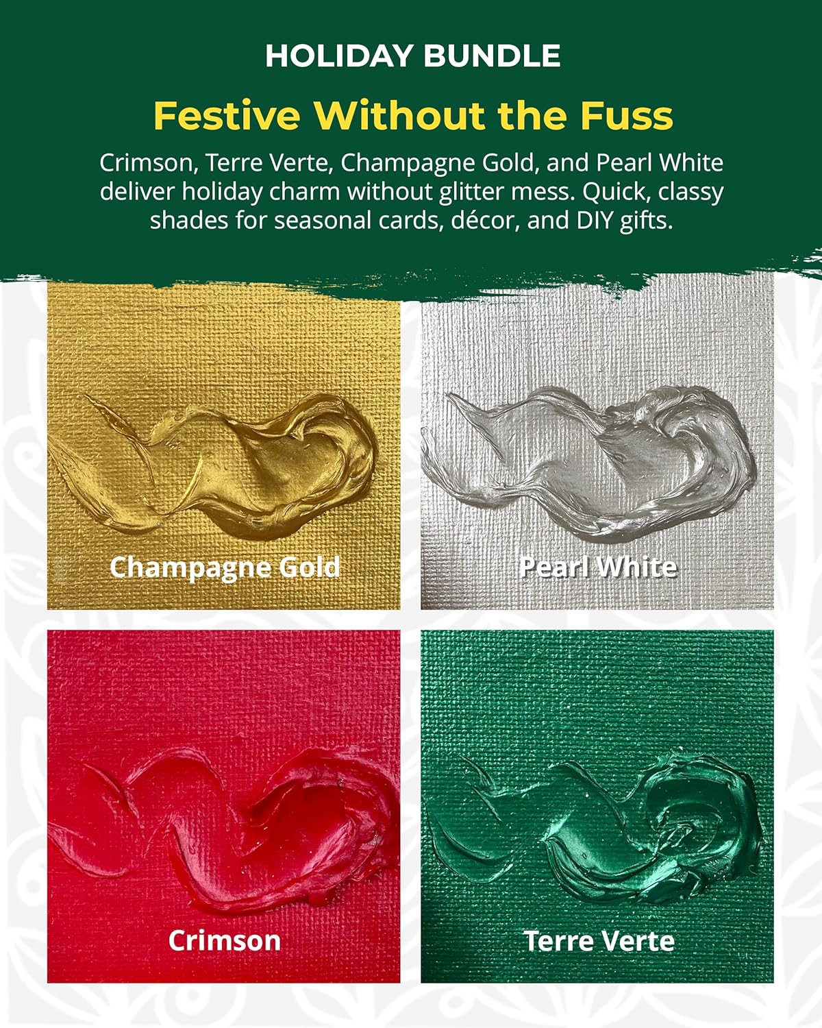 - CLASSIC HOLIDAY HUES FOR SEASONAL MAGIC - Packed with Terre Verte, Crimson, Champagne Gold and Pearl White—ideal for festive crafting, gift tags, ornaments, and winter cardmaking.