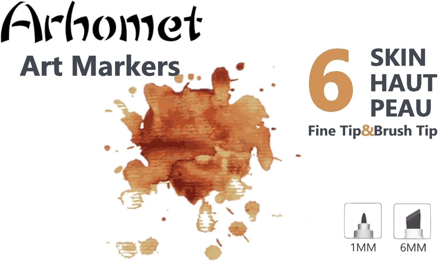 6 Colors Skin Tone Alcohol Markers Set, Skin, Wood, Earth Colors Dual Tips Art Markers Drawing Sketched Double Tipped for Adults Beginner Kids (Skin Tone)
