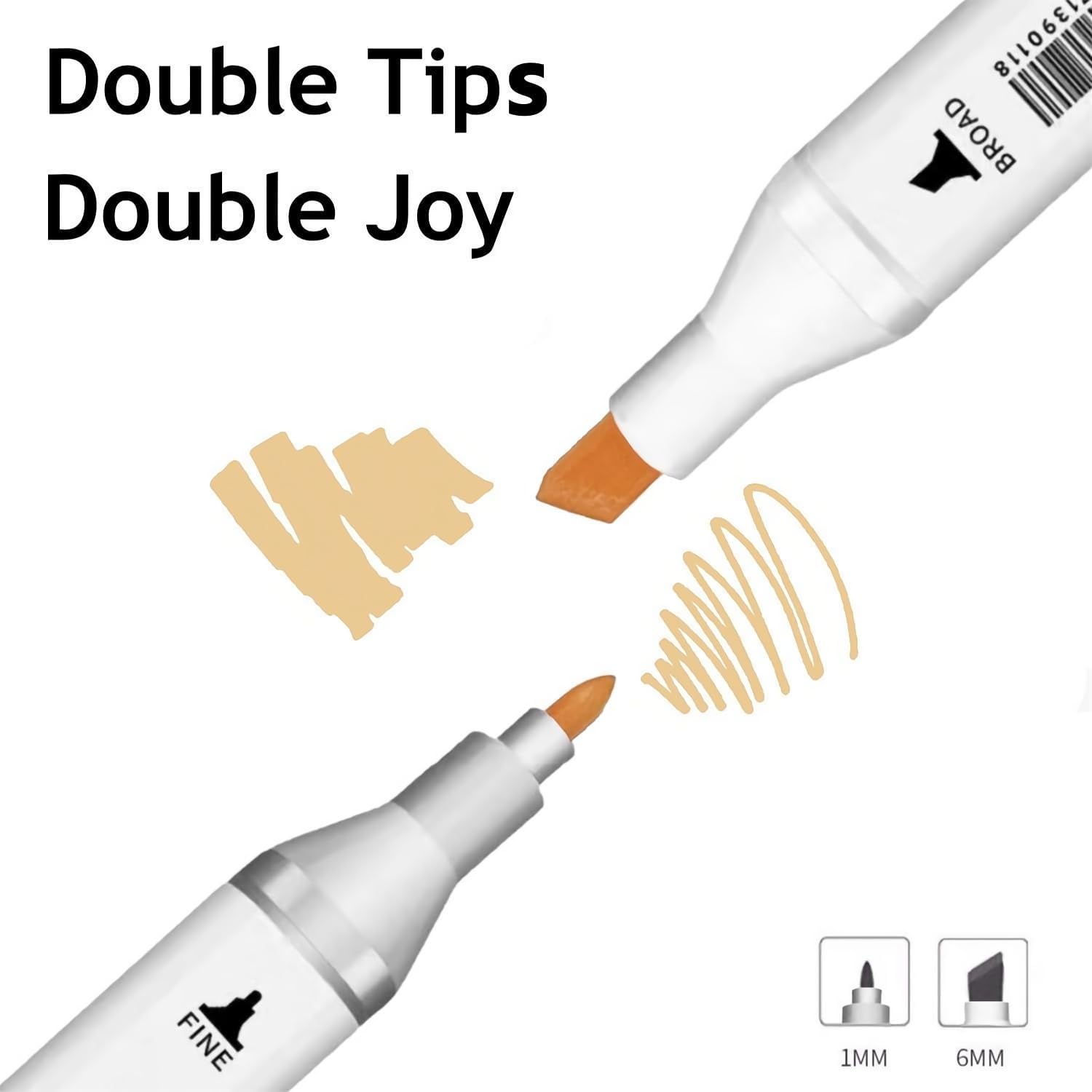 - DUAL TIPS: A 6mm broad tip for quick coverage and a 1mm pointed bullet tip for highlights, shadows, bullet points, sketching and general writing. Clean thick, thin or brushed lines can be achieved with ease.