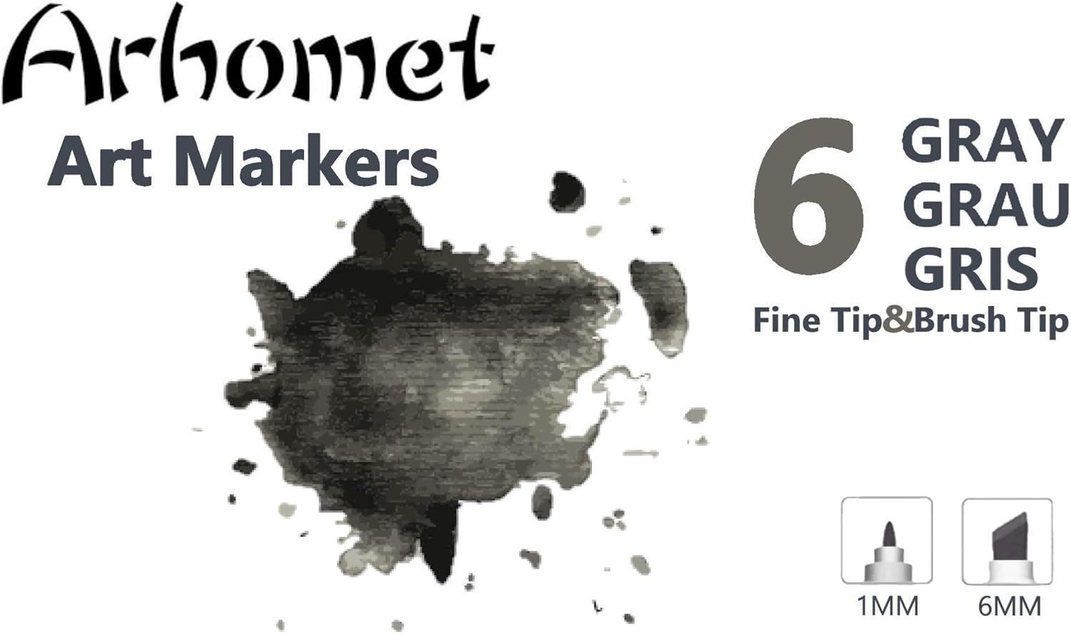 6pcs Grey Gray Alcohol Markers Set for Building Interior Design, Dual Tips Art Markers Drawing Sketched Double Tipped for Adults Kids (Cool Grey)