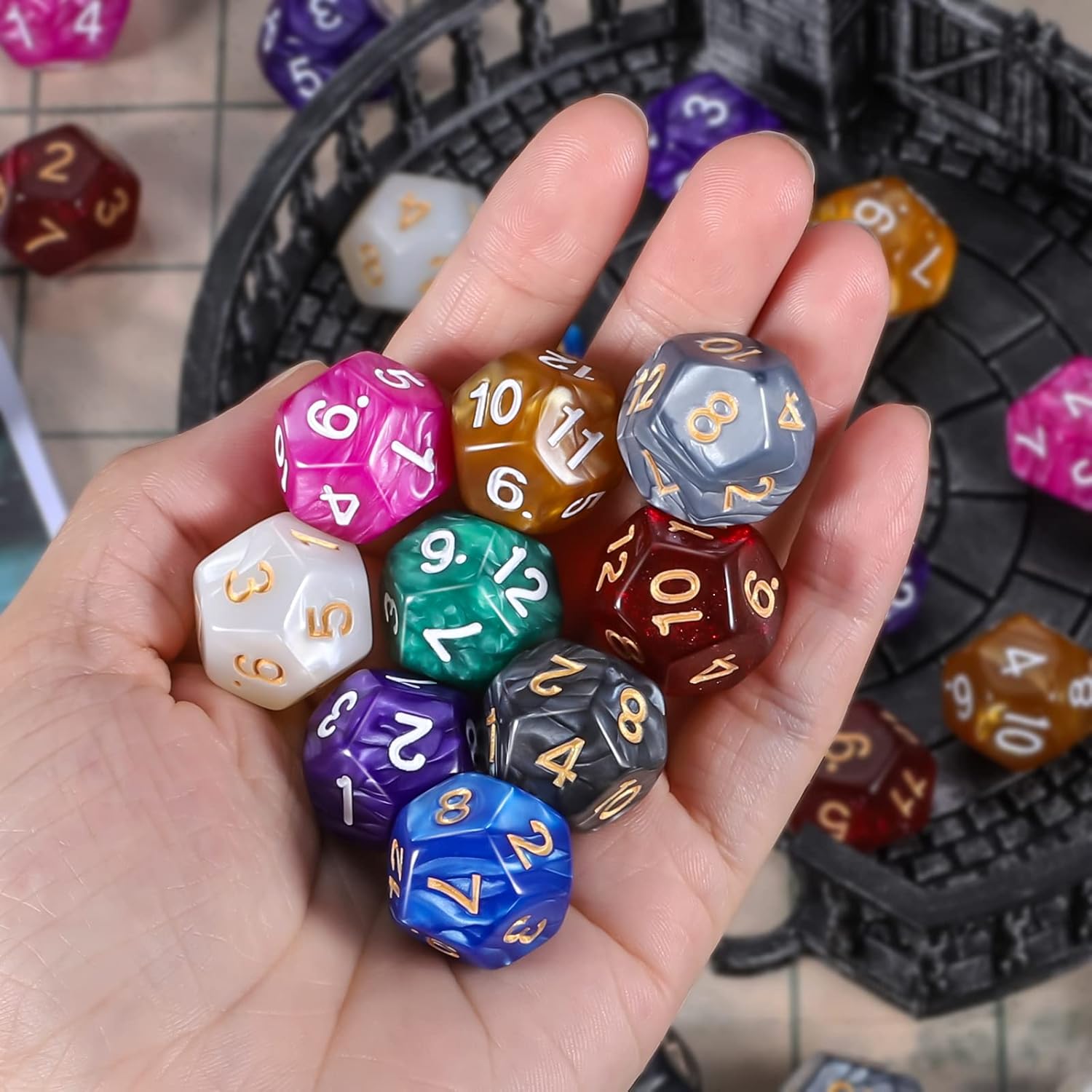 - π² Easy to Read: These D12 Polyhedron dices have gold, black and white painted lettering which are as large as possible on each surface for easy reading.