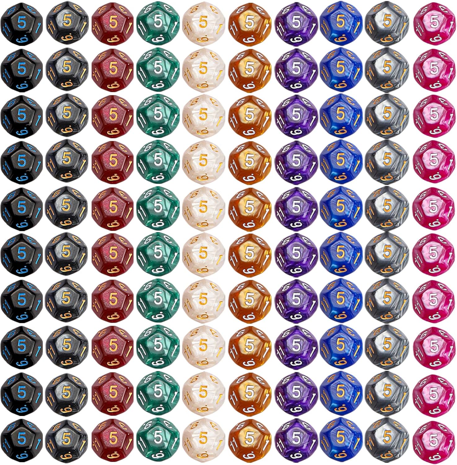 CiaraQ DND Polyhedral Dice (100pcs) with A Dice Bag Compatible with Dungeons and Dragons DND RPG MTG Role Playing Table Games (D12 dice, 10 colors-100 pcs)