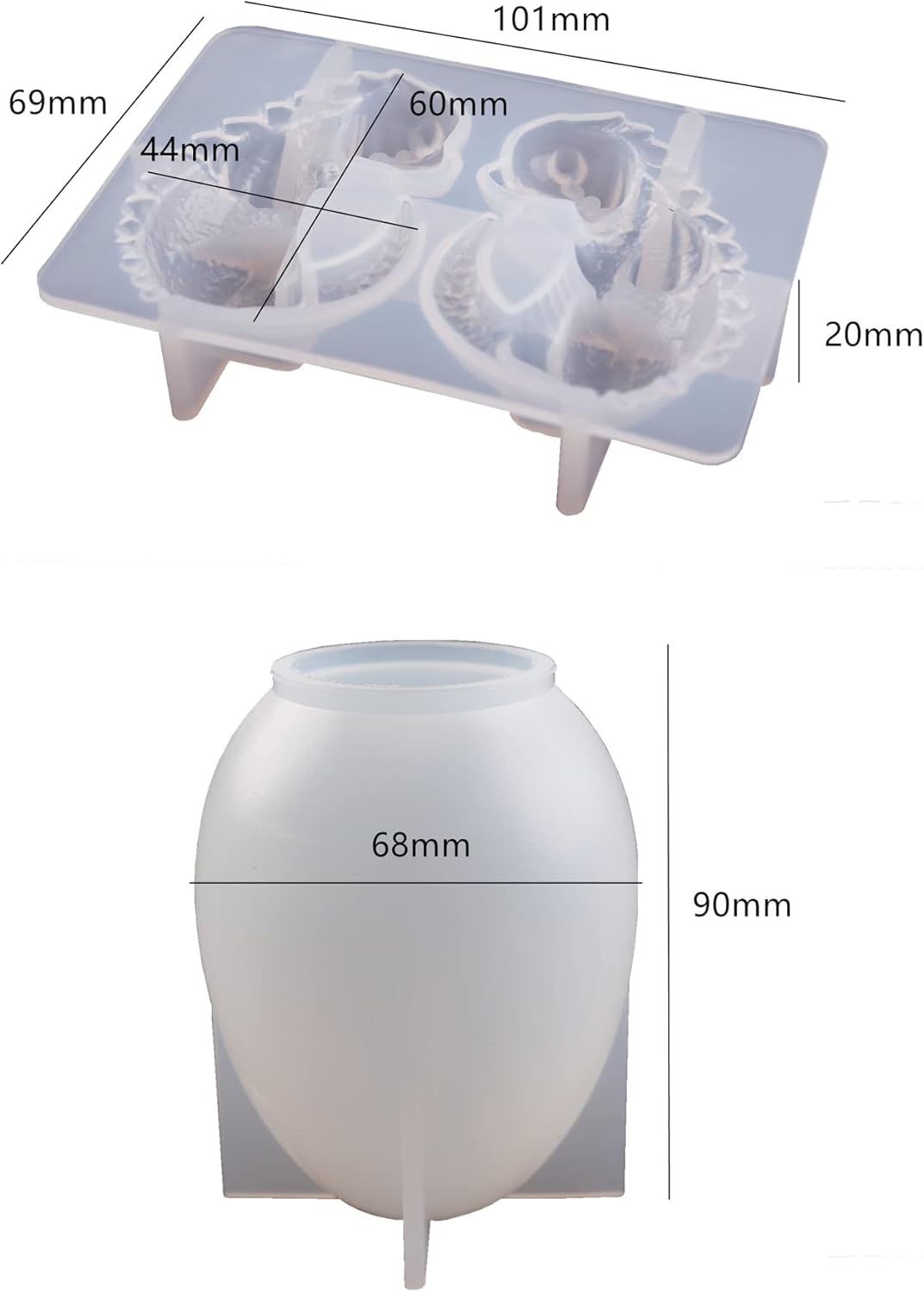 - PRODUCT SIZE: This Mold include 2 pieces silicone mold, mold size is show in the picture.
