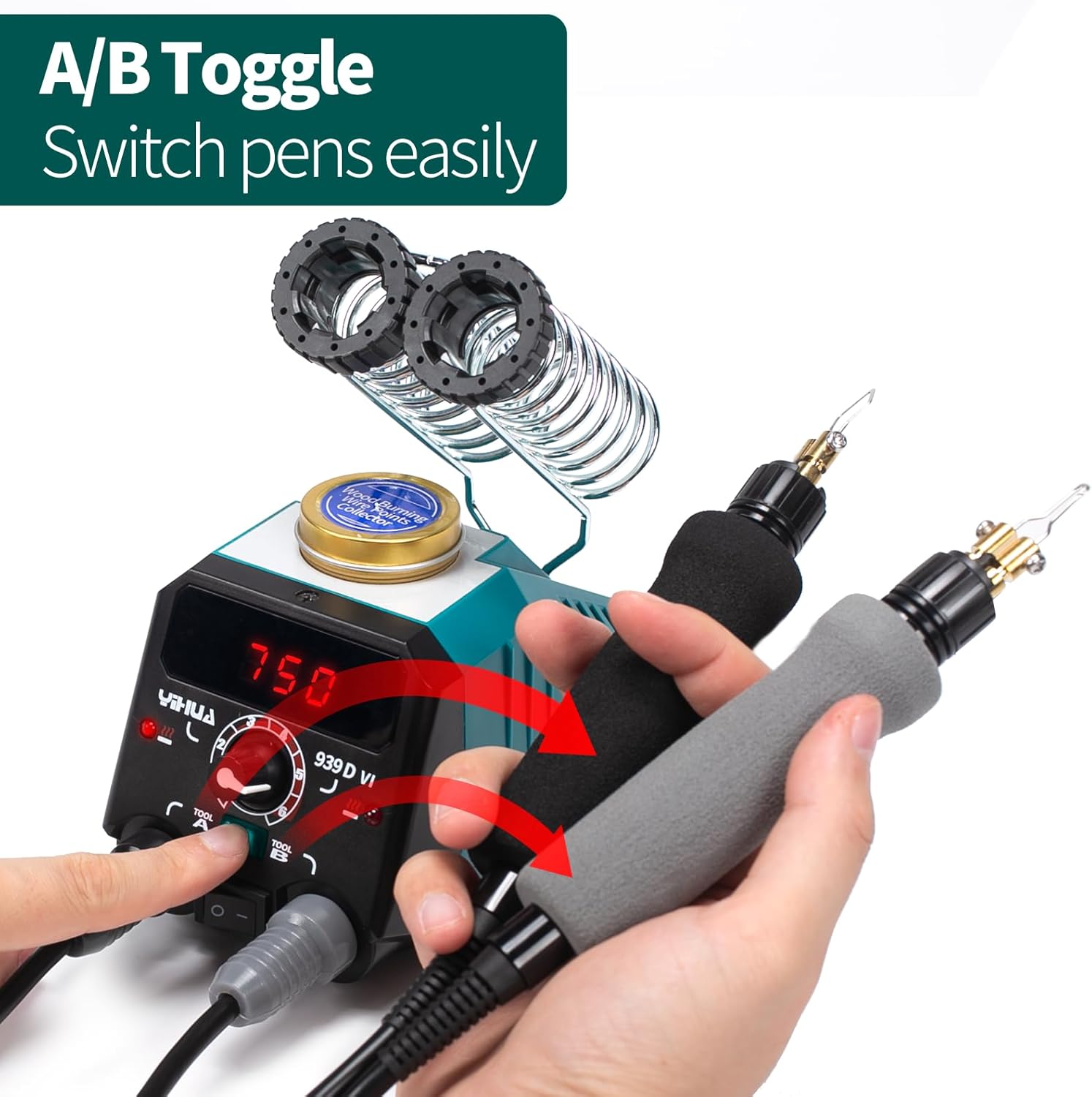 YIHUA 939D-VI Dual Pen Wood Burning Kit with Digital Display with 20 Wire Nibs, Detachable Wood Burning Pen, 2 Wood Pieces, Tweezers Used as Wood Burning Tool