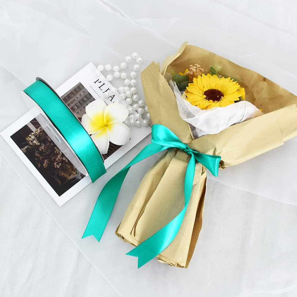 TONIFUL 1 Inch x 100yds Aqua Teal Blue Satin Ribbon, Thin Solid Color Satin Ribbon for Gift Wrapping, Crafts, Hair Bows Making, Wedding Party Decoration, Invitation Cards, Floral Bouquets