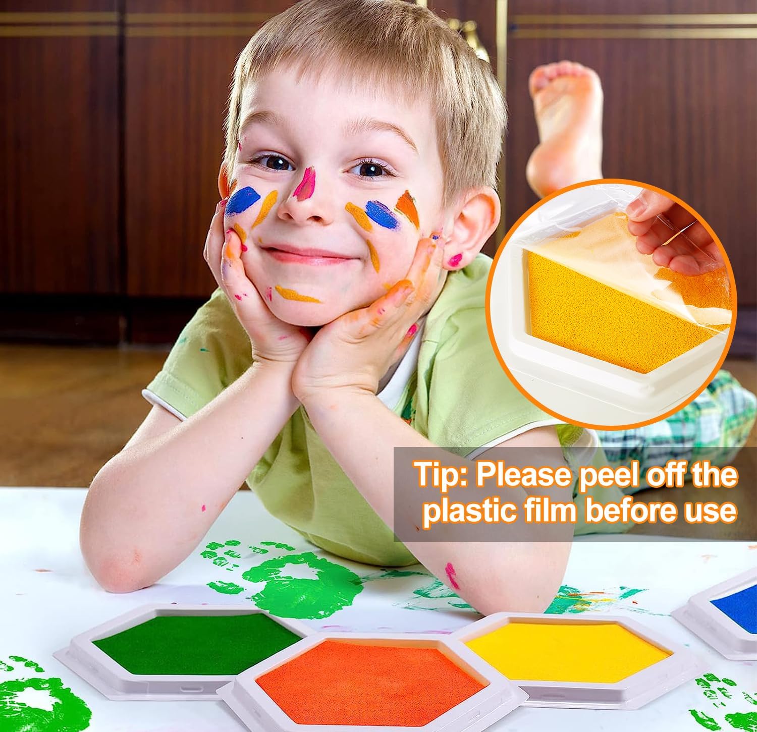 - 【Safe Material】Our ink pads are made from environmental pigments, which are safe and harmless for use. The ink is so easy to clean off from the skin that children can use these alone with no worry. Tips: After use, cover the inside with a layer of plastic wrap, then close the lid to ensure it is sealed. Store in a cool, airtight place. If the ink starts to dry, spray some alcohol on it and let it sit for 3-5 minutes for better use.