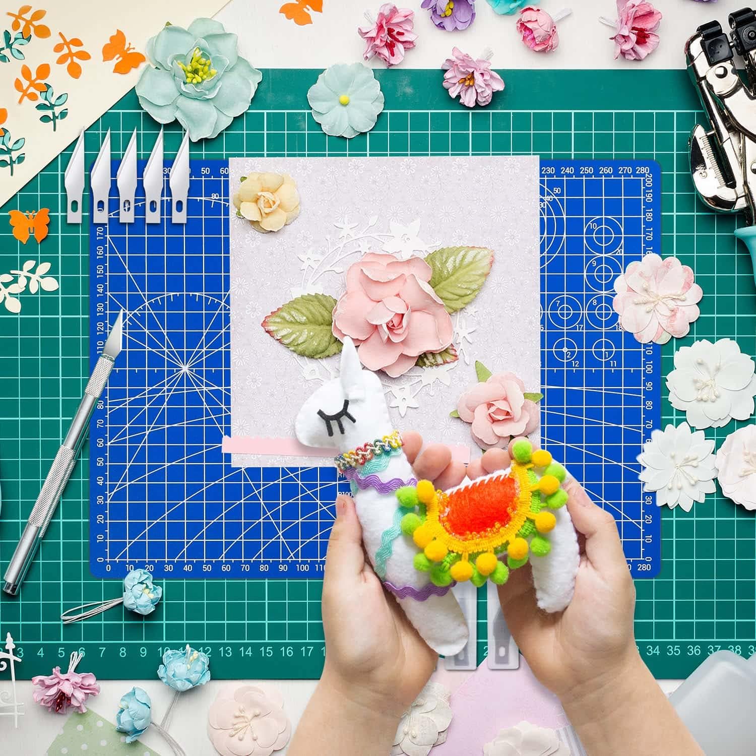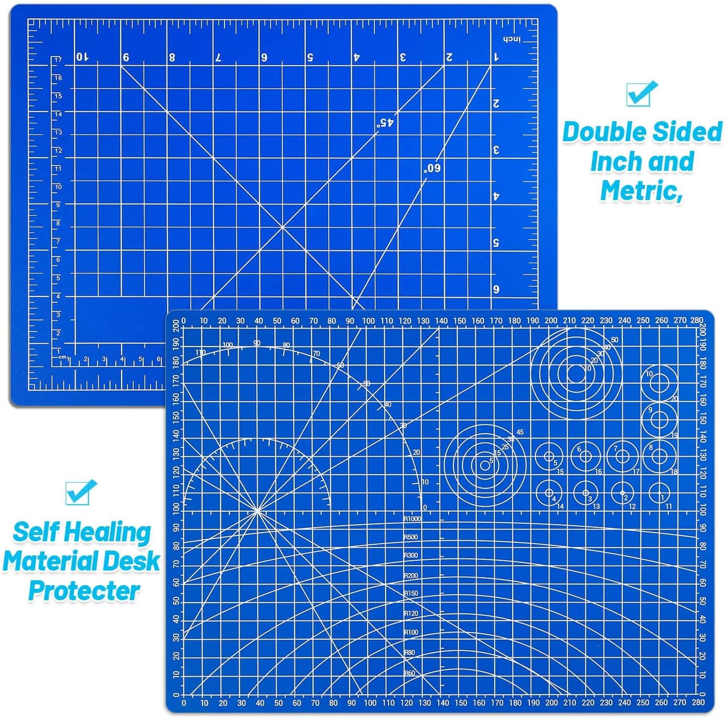 - 【Hobby Mat for Craft Knife】The A4 sewing mat measures 12 x 9 inches, double side prints with inch and metric measurements, and different angles that will help cut exactly. Rotary craft mat also helps to protect your art knives, straight cutting blades, rotary cutter, and work table.