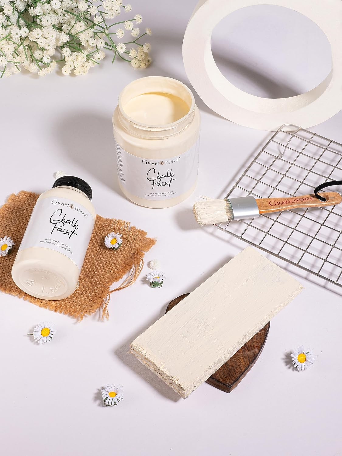 GRANOTONE Chalk Paint for Furniture, Matt-Finish Water-Based Acrylic Paint for Wood, Walls, Metal, Glass, Paper, Fabric Canvas, Maximum Coverage Chalk Paint for Kids & Adults, 500 Ml (WARM LINEN)