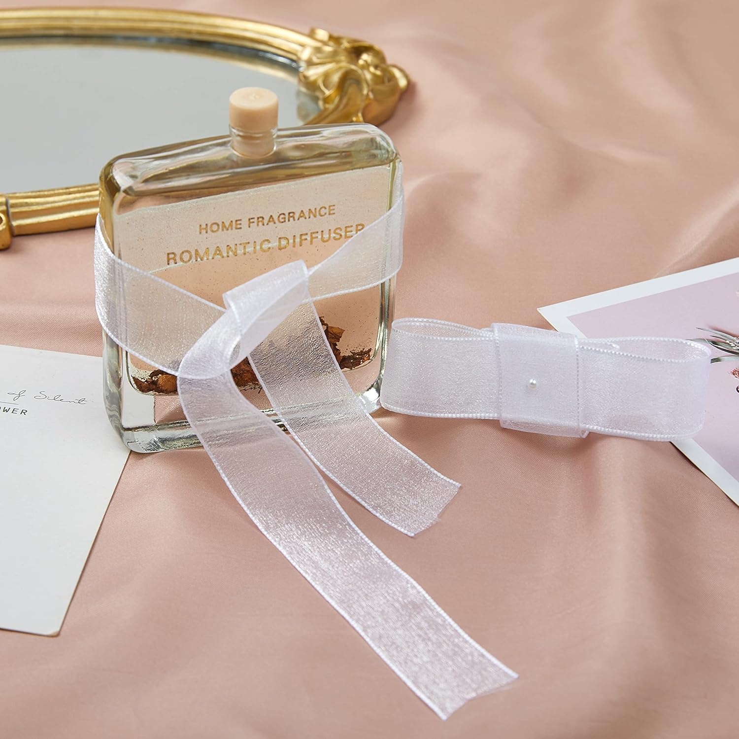 1 Inch Wide Sheer Chiffon Ribbon - Pearl Silk Woven Ribbon Suitable for Gift Wrapping, Wedding Decor, Home Decor, Girl Hair Accessories Handmade DIY (25 Yards/roll) (White)