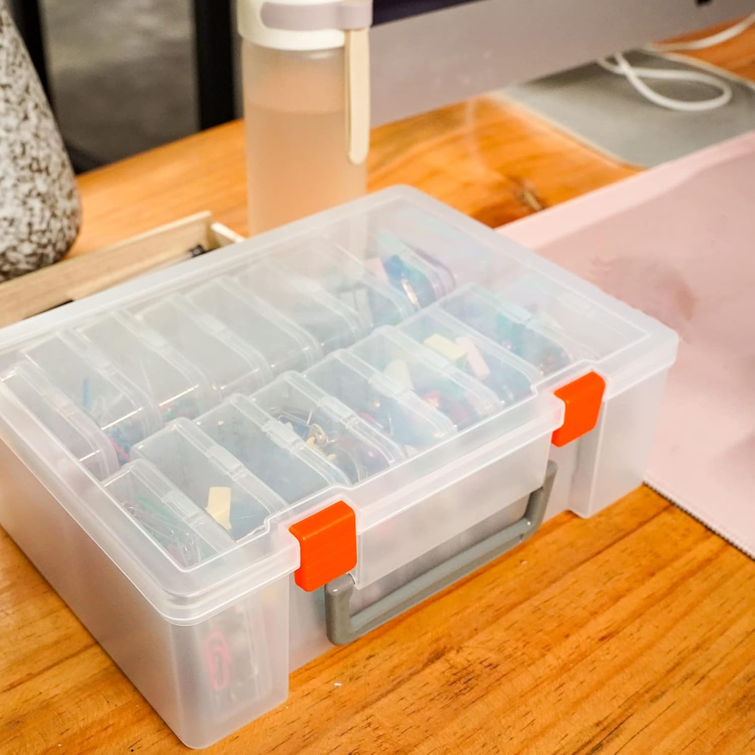 - Measurement: Each small parts organizer measures about 7.5 x 7.5 x 2 cm/ 2.95 x 2.95 x 0.79 inches, and the outer big storage box measures about 25 x 19 x 8 cm/ 9.84 x 7.48 x 3.15 inches.