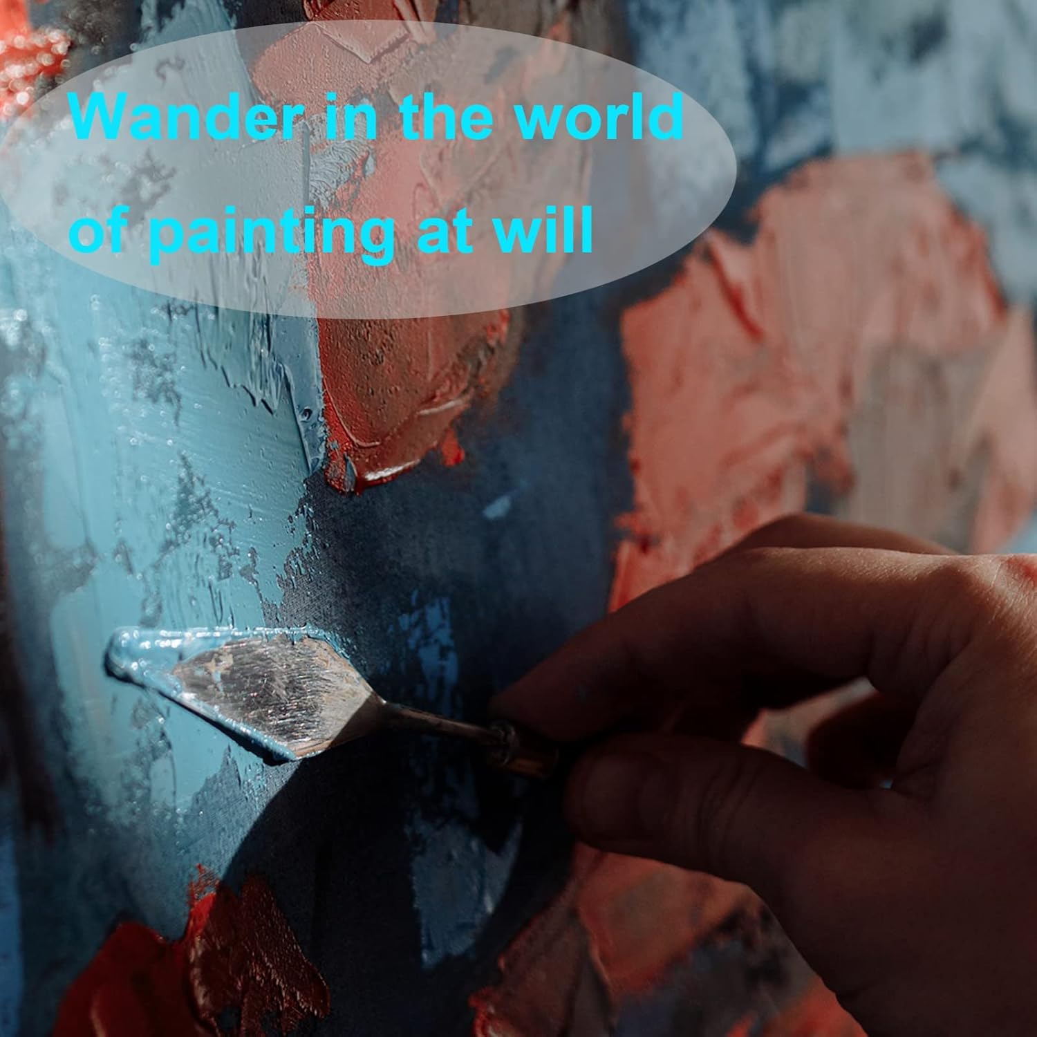 - 【Easy to clean】Palette knives for oil painting with smooth edges without burrs, can pick up heavy paint, easy to clean, to meet the needs of all types of painting, color mixing, smearing, scraping, repainting, painting.