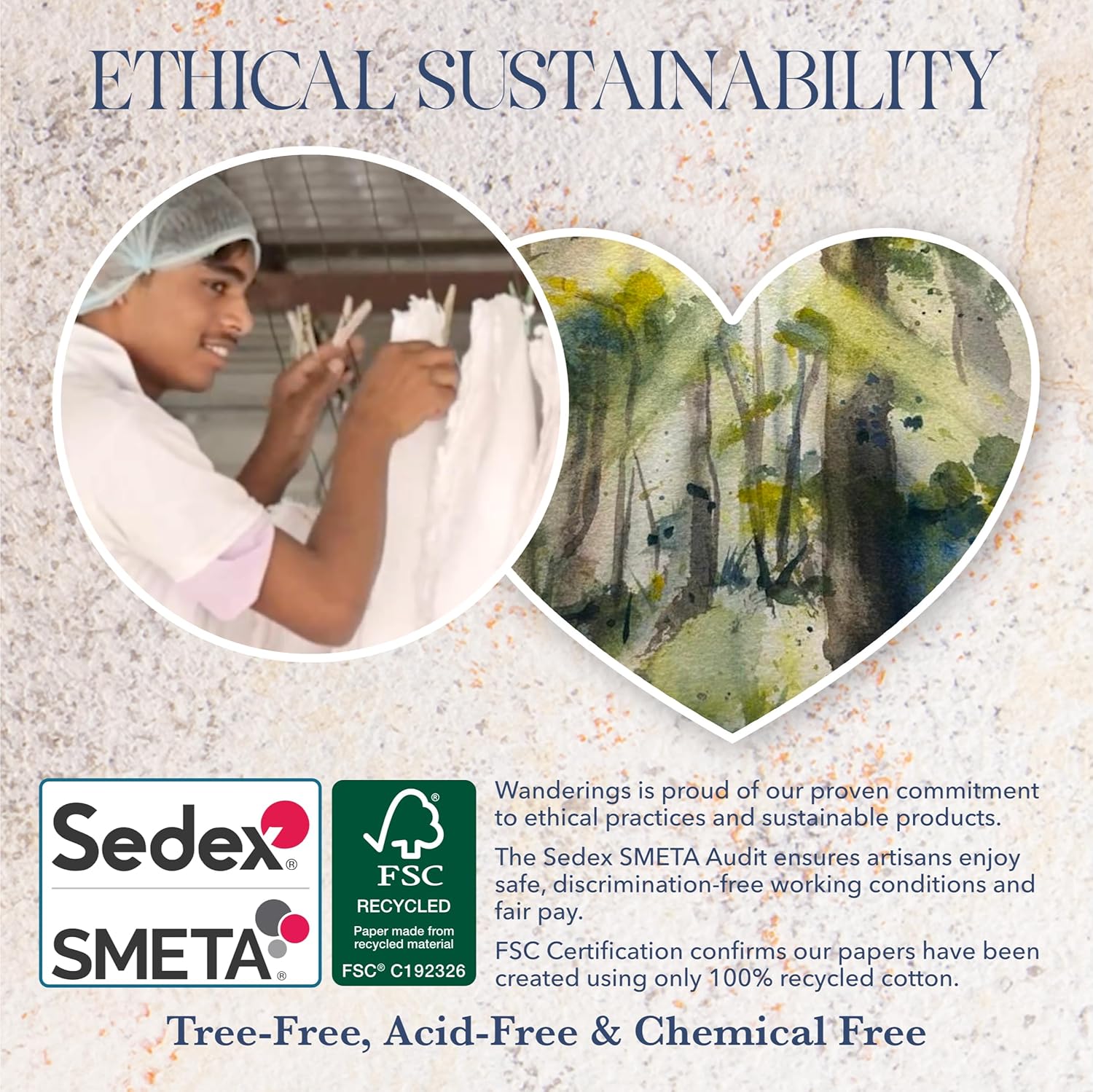 - Material : Chemical-free cotton pulp ensures archival quality and preservation, Handmade cotton paper crafted using traditional cold-pressing methods, Made from 100% recycled cotton sourced from garment industry remnants, Plant-based sizing adds ink control and enhances surface durability, Tree-free material supports sustainable and environmentally friendly production Chemical-free cotton pulp ensures archival quality and preservation, Handmade cotton paper crafted using t… See more